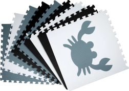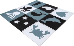 Подложката от еластична EVA пяна е без фталати, формамид, BPA и PVC, отговаря на EN 71 и REACH и носи маркировка CE. Благодарение на дебелината 1 см отлично изолира от студа и омекотява паданията, което я прави идеална за паркет, плочки и ламинат. Водоустойчива и лесна за почистване повърхност, не задържа прах или акари – достатъчно е да се забърше с влажна кърпа.
