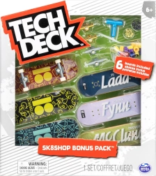 Сглоби своите собствени фингърбордове с емблематичния комплект TECH DECK Bonus Pack от марката Spin Master. В комплекта ще откриеш 6 декa за скейтборд, включително напълно сглобен фингърборд, тракове, колелца, винтчета, гайки, грип, инструменти и стикери. Идеално за трениране на трикове с пръсти, развитие на координацията и часове забавление за деца от 6 години.
