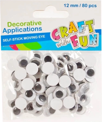 Създайте оригинални декорации и забавни проекти с тези подвижни самозалепващи очи. Комплектът съдържа 80 бр. очи с подвижни черни зеници, идеални за творене, скрапбукинг и други ръчни занимания. Подходящи за деца от 3 години.