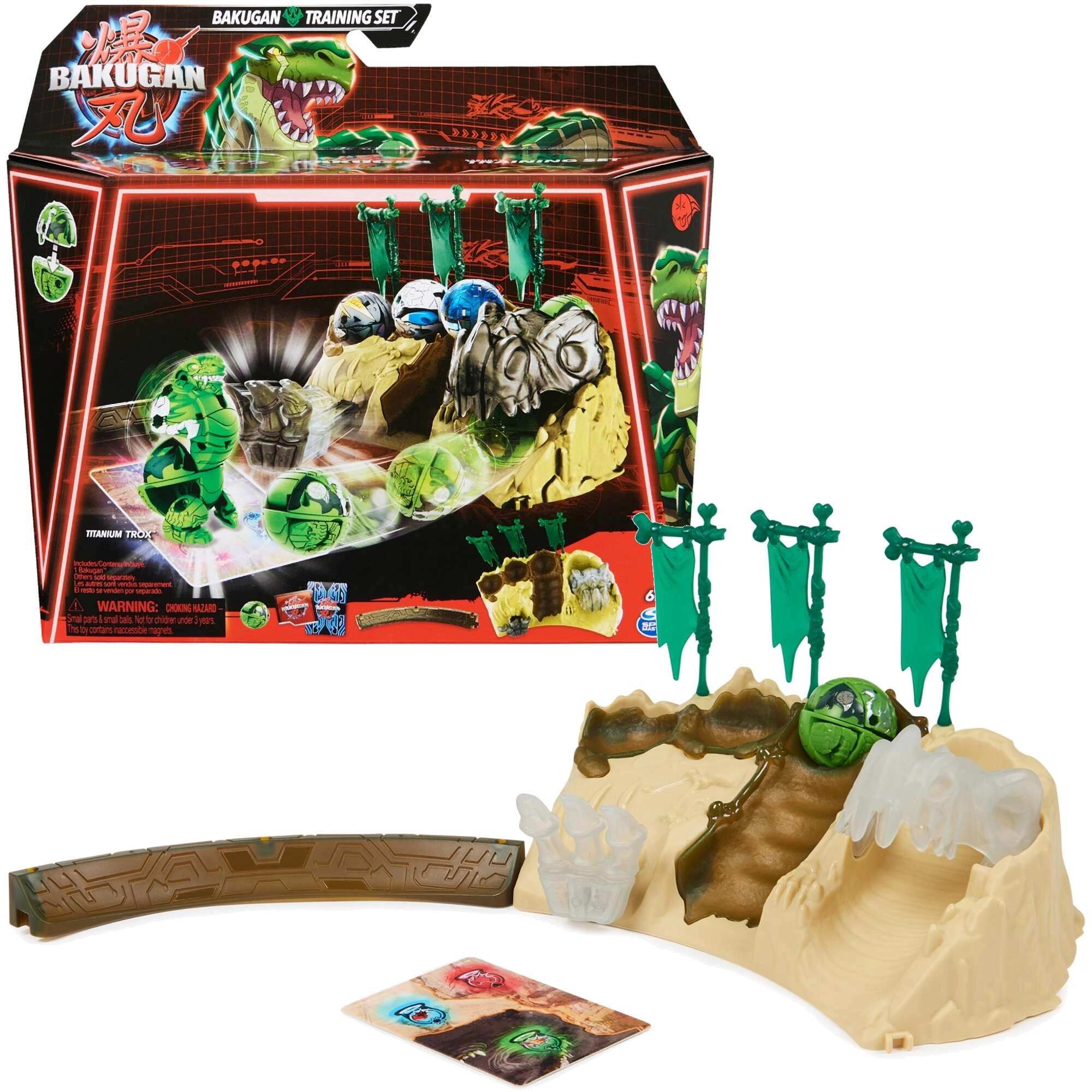 Открий адреналинови дуели с тренировъчния сет BAKUGAN, в който ще намериш всичко за бърз старт: арена с препятствия, официални карти, жетони и фигурка Titanium Trox, която след хвърляне от сферична форма автоматично се трансформира в хищно създание. Идеален за самостоятелни тренировки и стратегически битки с приятели.