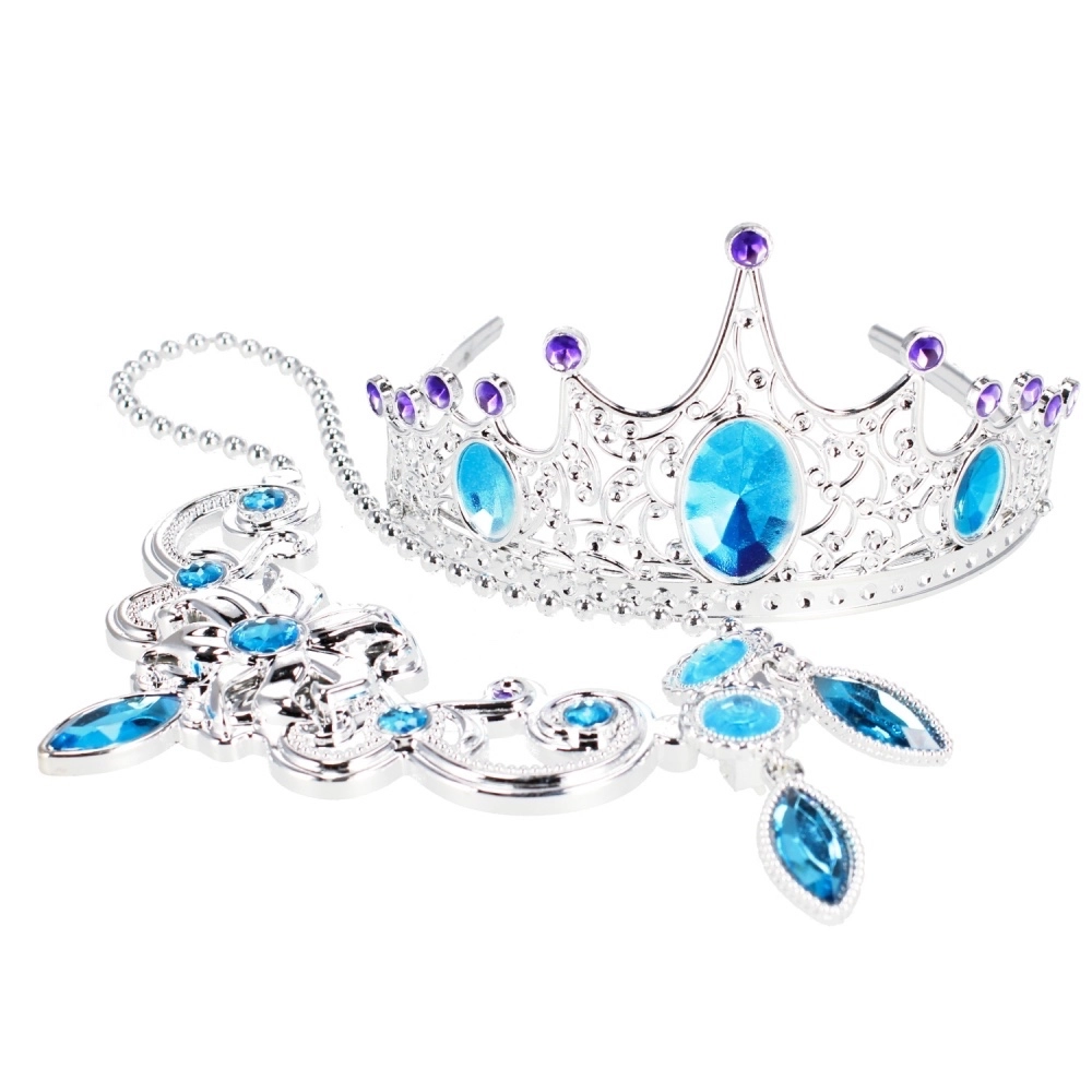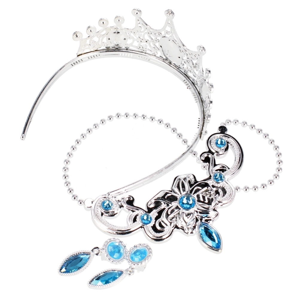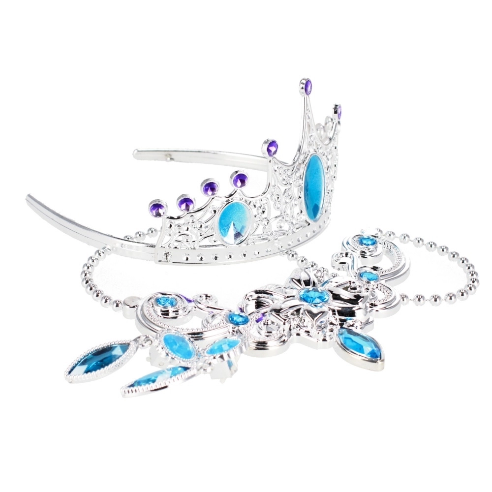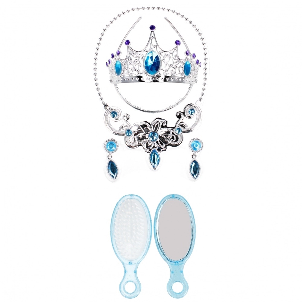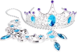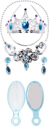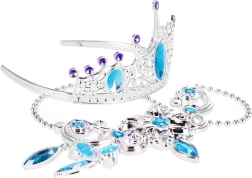 Този приказен комплект бижута и аксесоари за ледена принцеса ще очарова всяко дете, което обича преобличане и творческа игра. Съчетанието от блестяща диадема, колие, обици и практични аксесоари за коса помага на децата лесно да създадат кралска визия.
