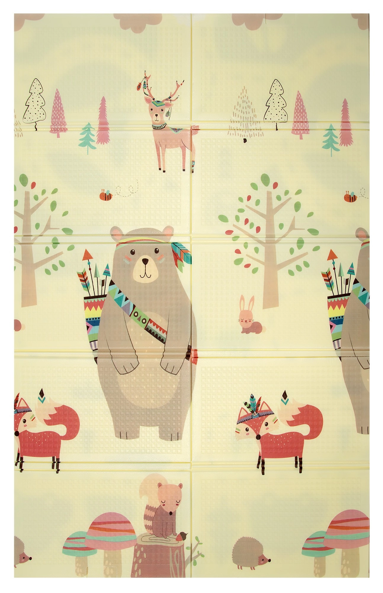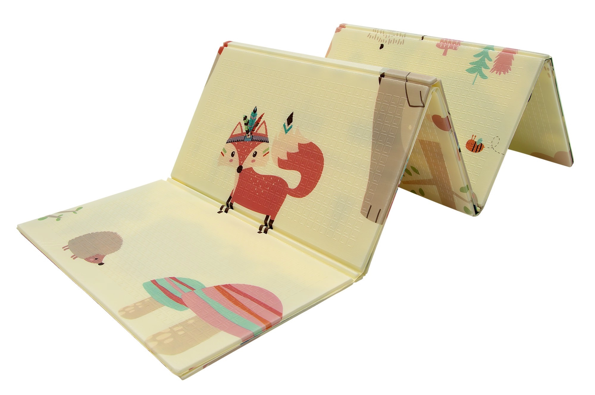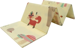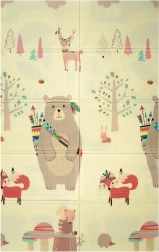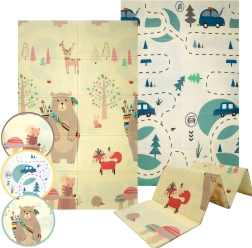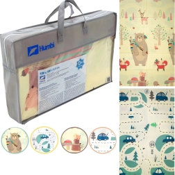Постелката HUMBI осигурява на децата меко и безопасно място за игра, почивка и развитие на моториката. Качествената XPE пяна е здрава, абсорбира удари и същевременно отлично изолира студа от пода. Двустранният дизайн предлага от едната страна сладки горски мотиви (мечета, лисици, таралежи), а от другата път с колички за забавни игри и сетивно откривателство.
