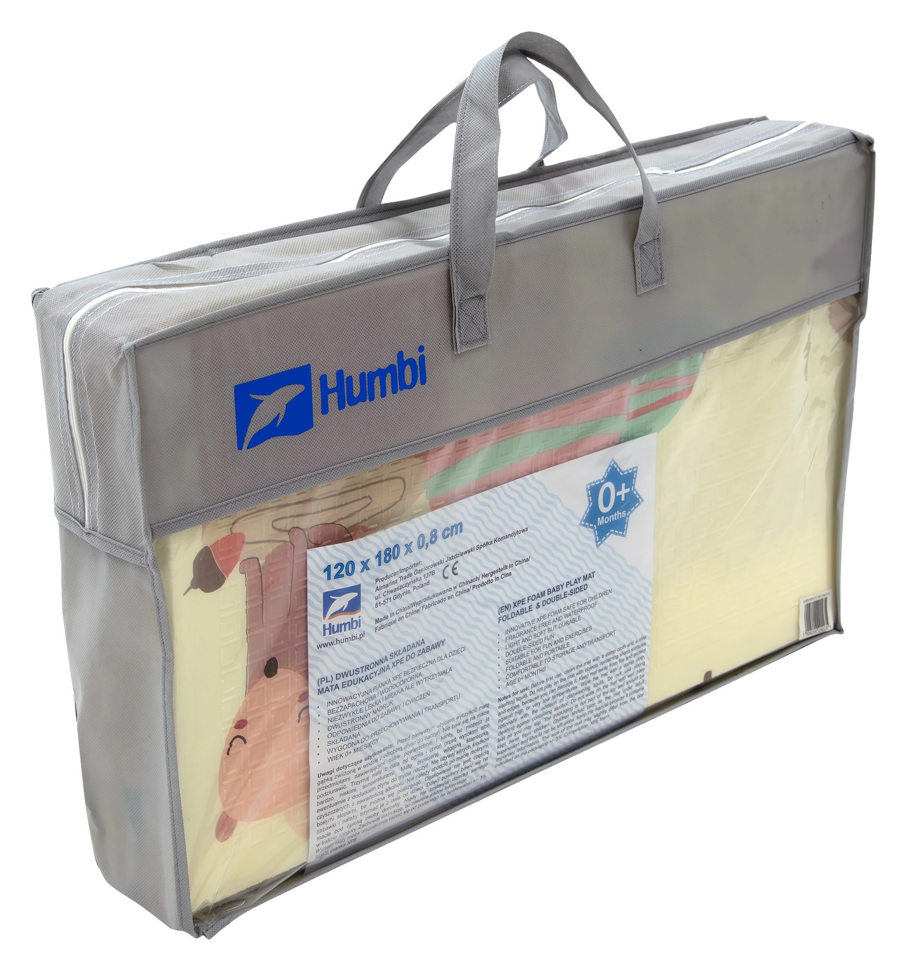 Благодарение на сгъваемата конструкция я сгъвате за секунди и прибирате в включената чанта с дръжка. Тя е водоустойчива, лесна за почистване и с фин противоплъзгащ релеф за безопасно пълзене и ходене. Подходяща за деца от раждането, за детска стая, хол, балкон и градина.