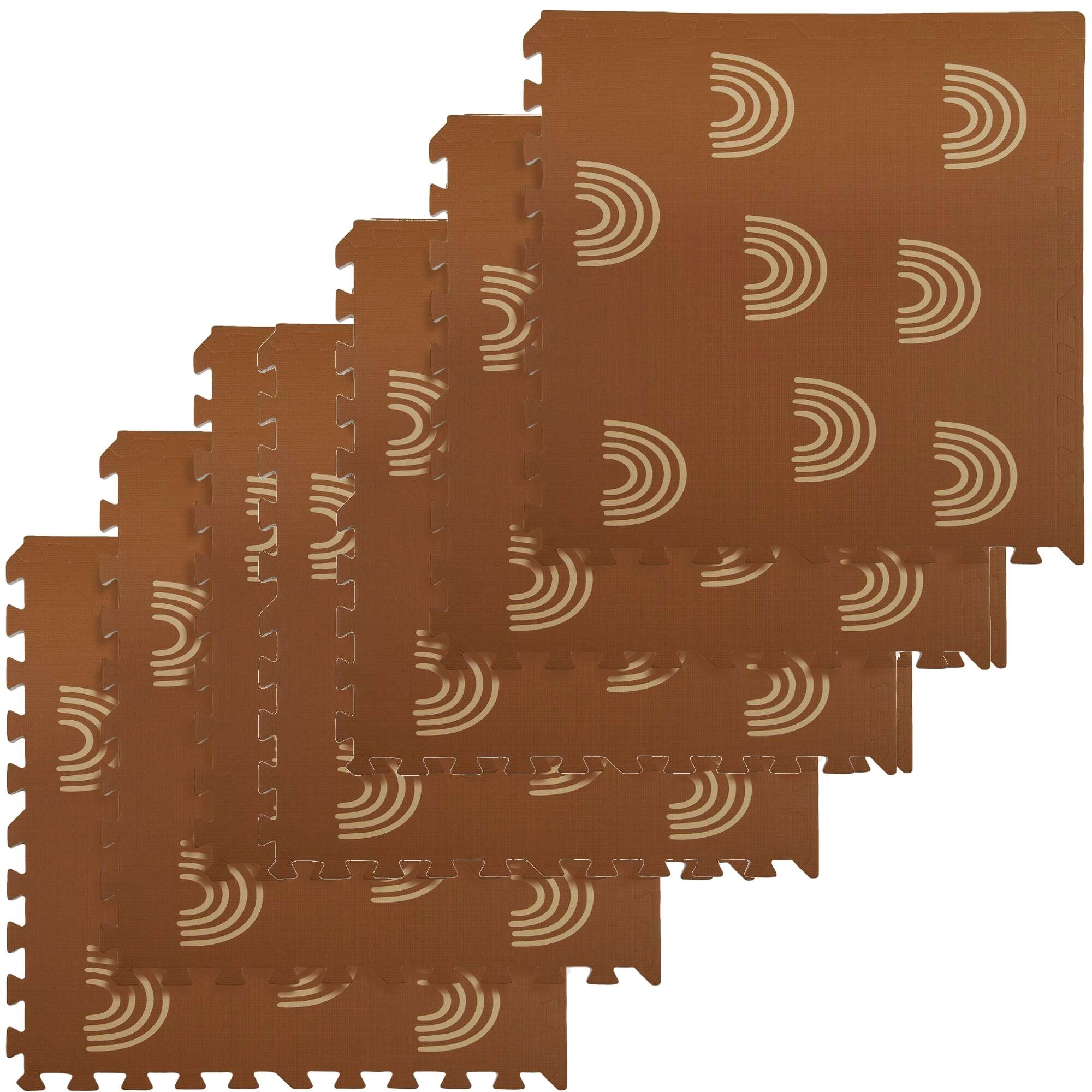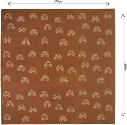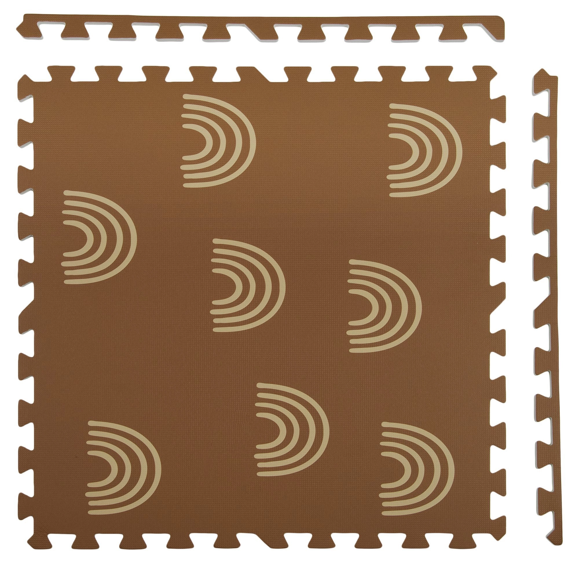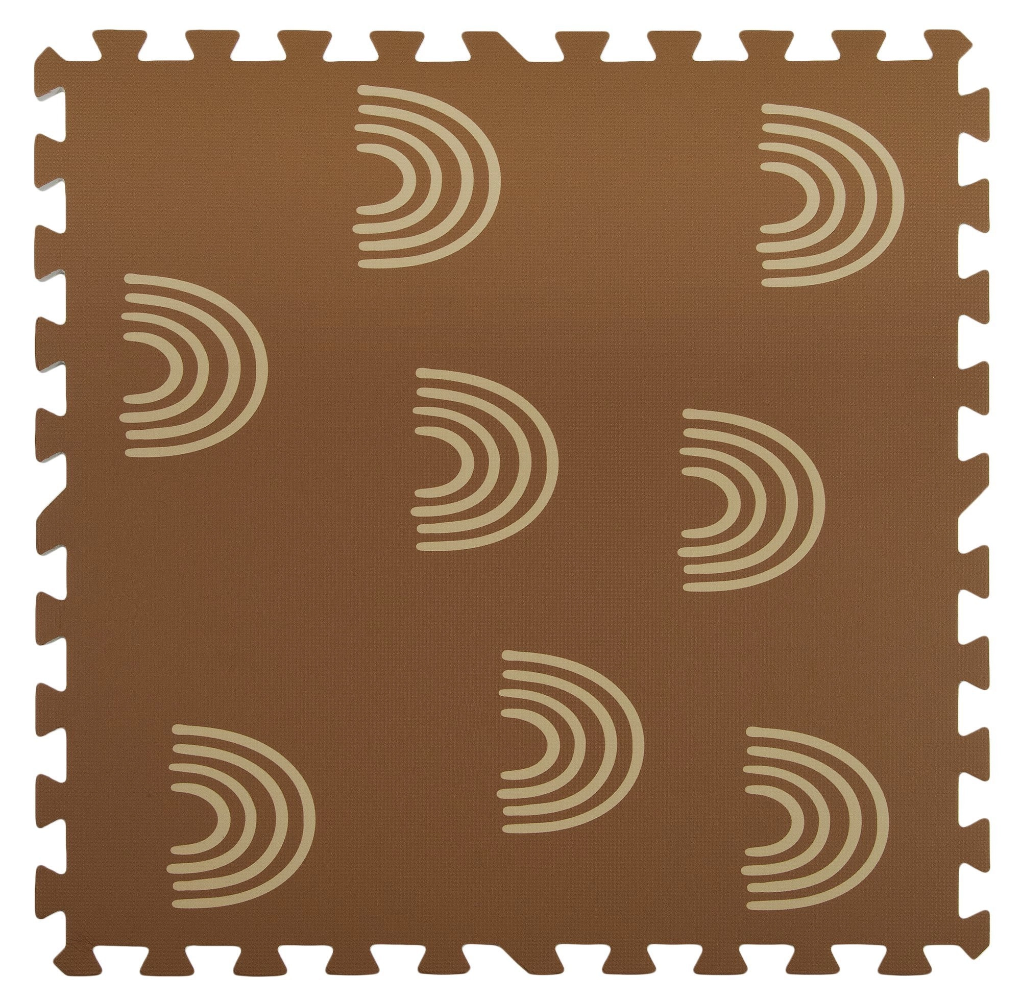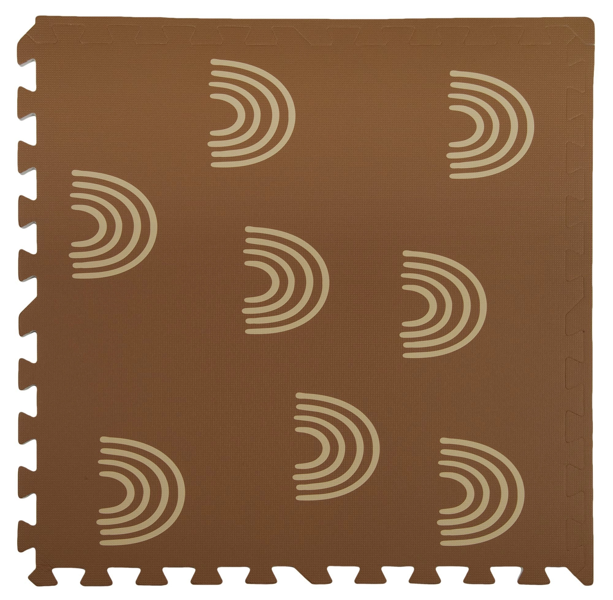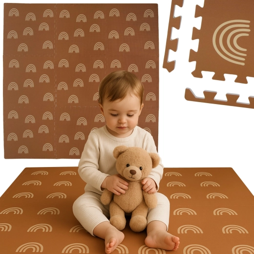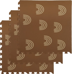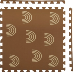 Пеновата постелка HUMBI с мотив нежни дъговидни арки в неутрално кафяво се съчетава с всеки интериор и едновременно защитава детето и пода. Благодарение на дебелина 1 см отлично абсорбира ударите и изолира от студ, така че е идеална за паркет, теракот и ламинат. Отделните части с пъзел заключване лесно свързвате в по-голяма площ или адаптирате към тесни места.