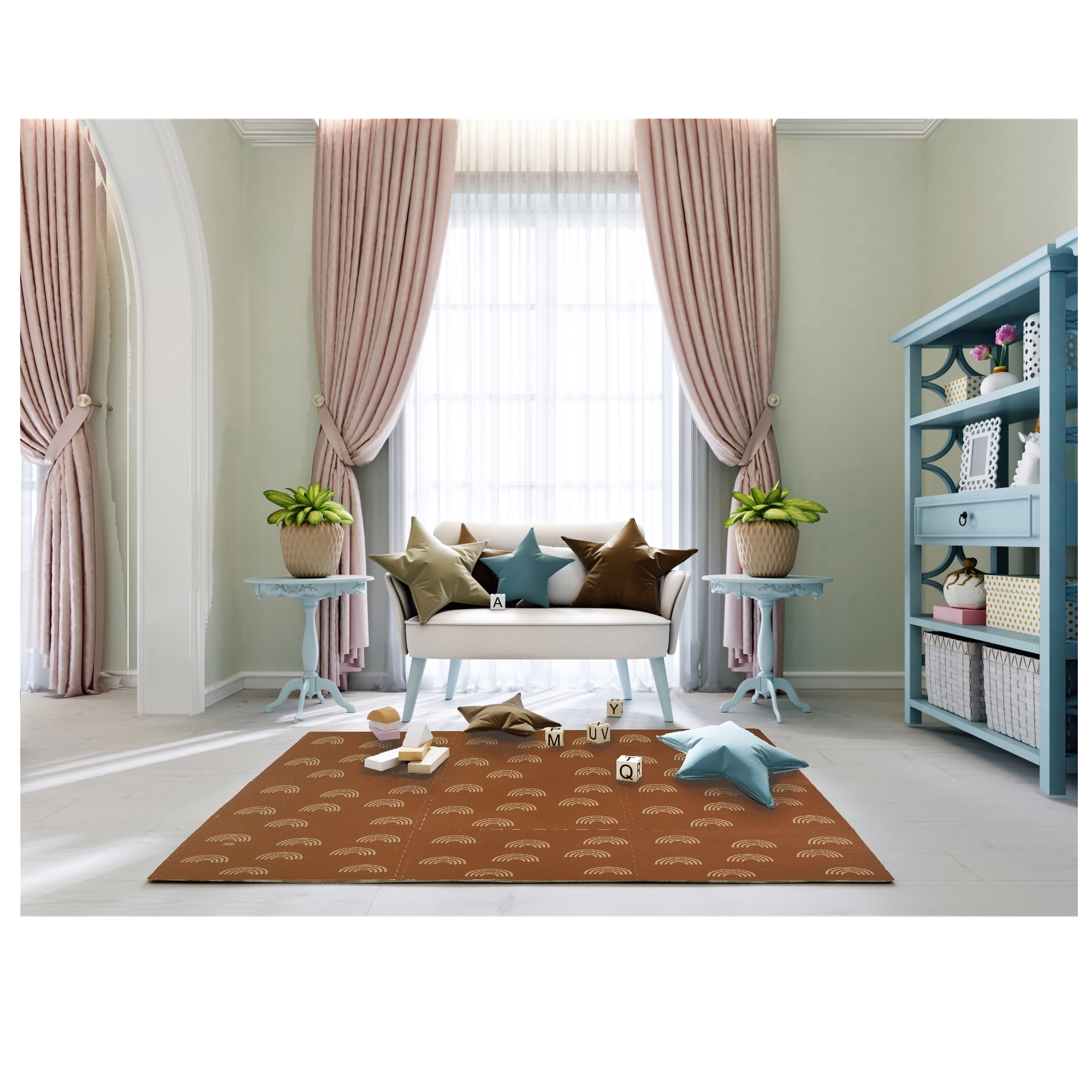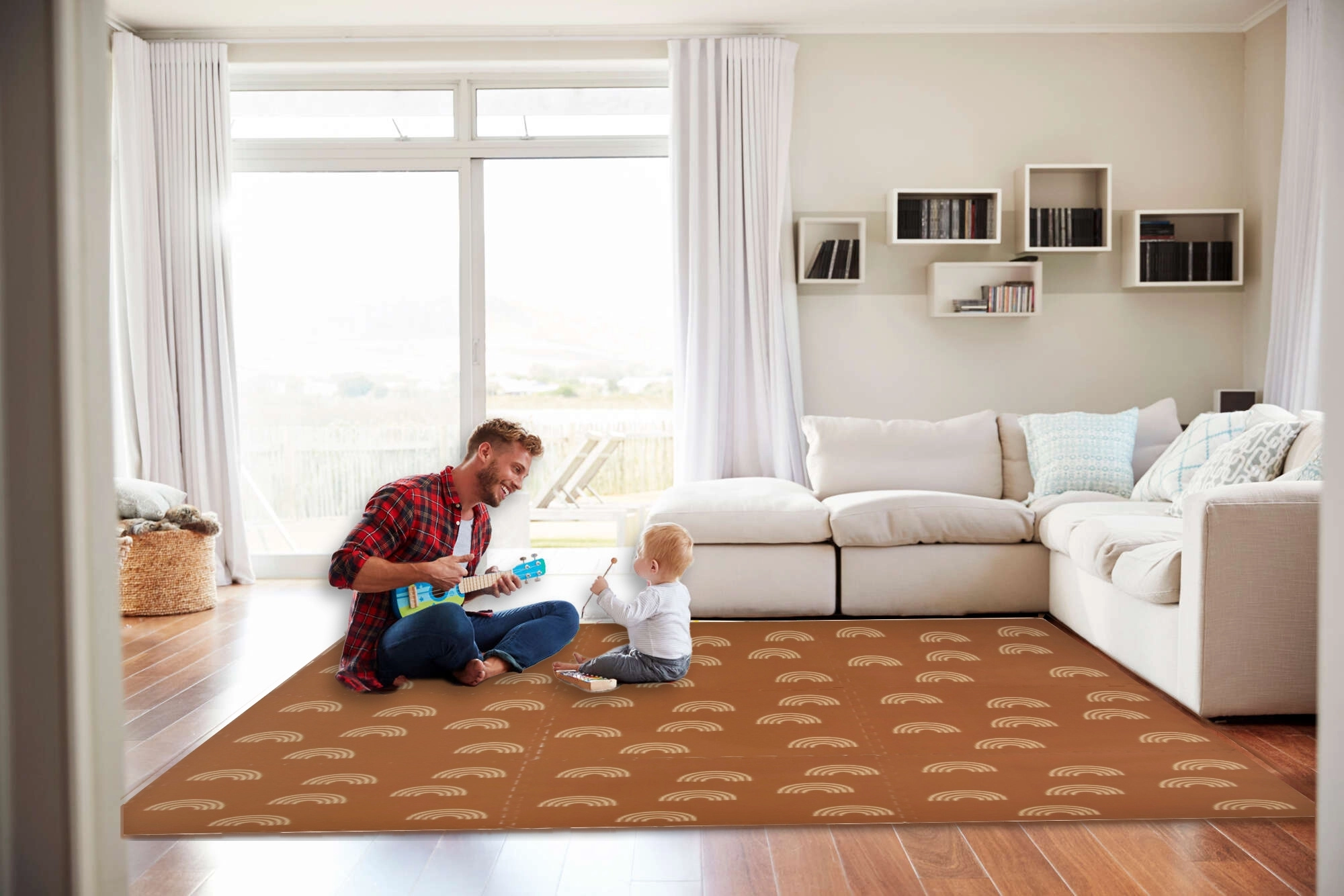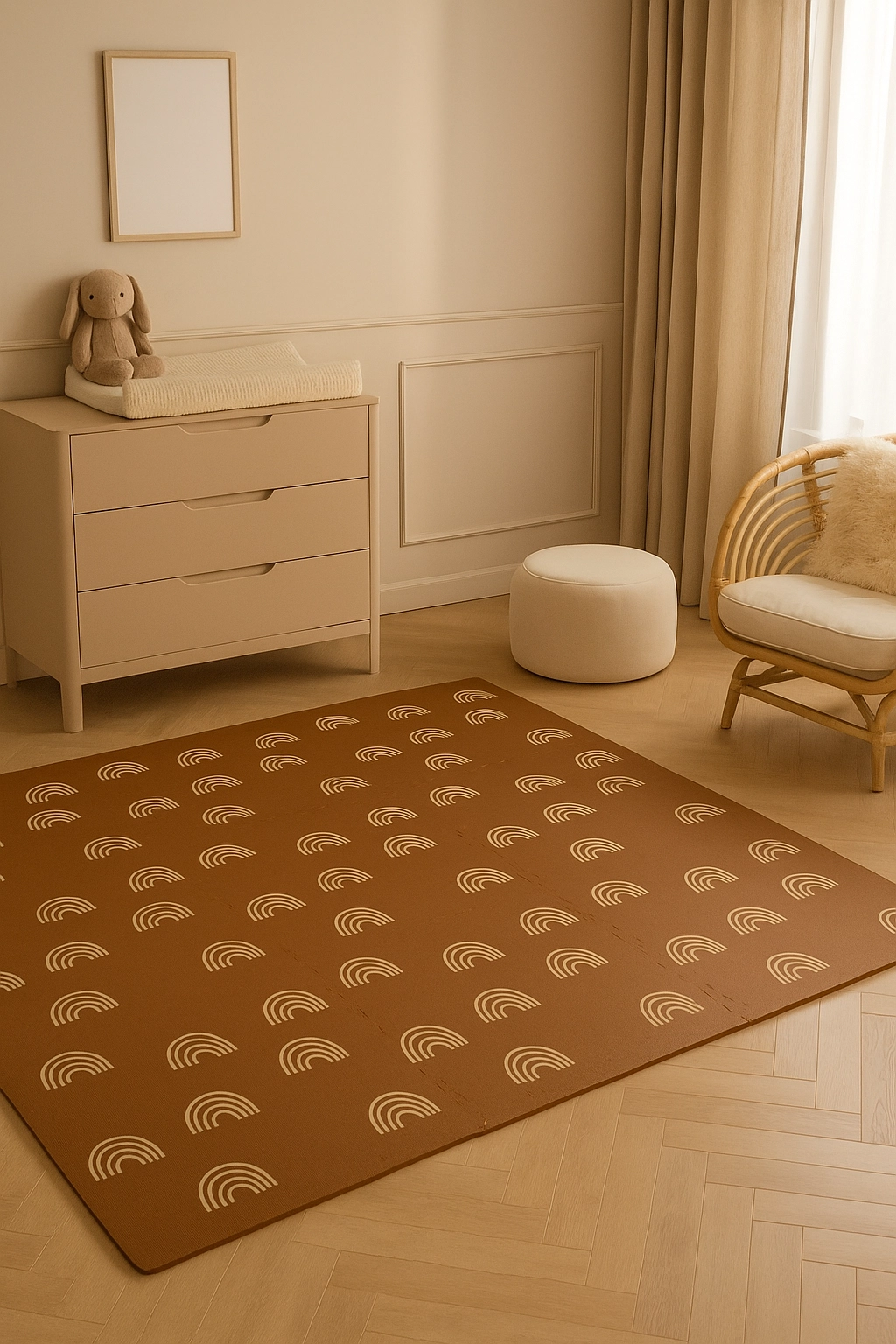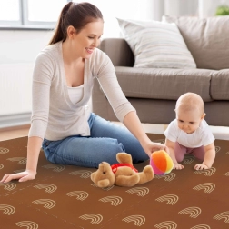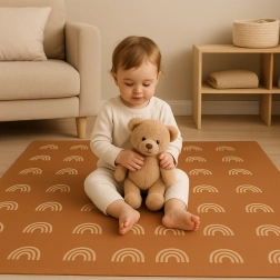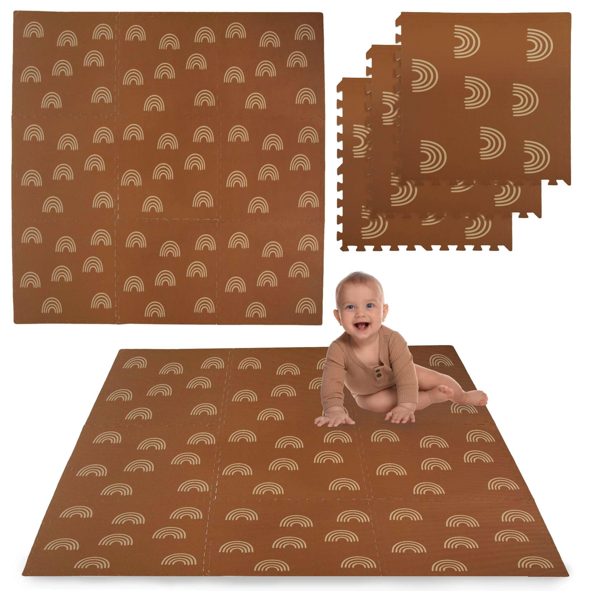 Пеновата постелка HUMBI с мотив нежни дъговидни арки в неутрално кафяво се съчетава с всеки интериор и едновременно защитава детето и пода. Благодарение на дебелина 1 см отлично абсорбира ударите и изолира от студ, така че е идеална за паркет, теракот и ламинат. Отделните части с пъзел заключване лесно свързвате в по-голяма площ или адаптирате към тесни места.