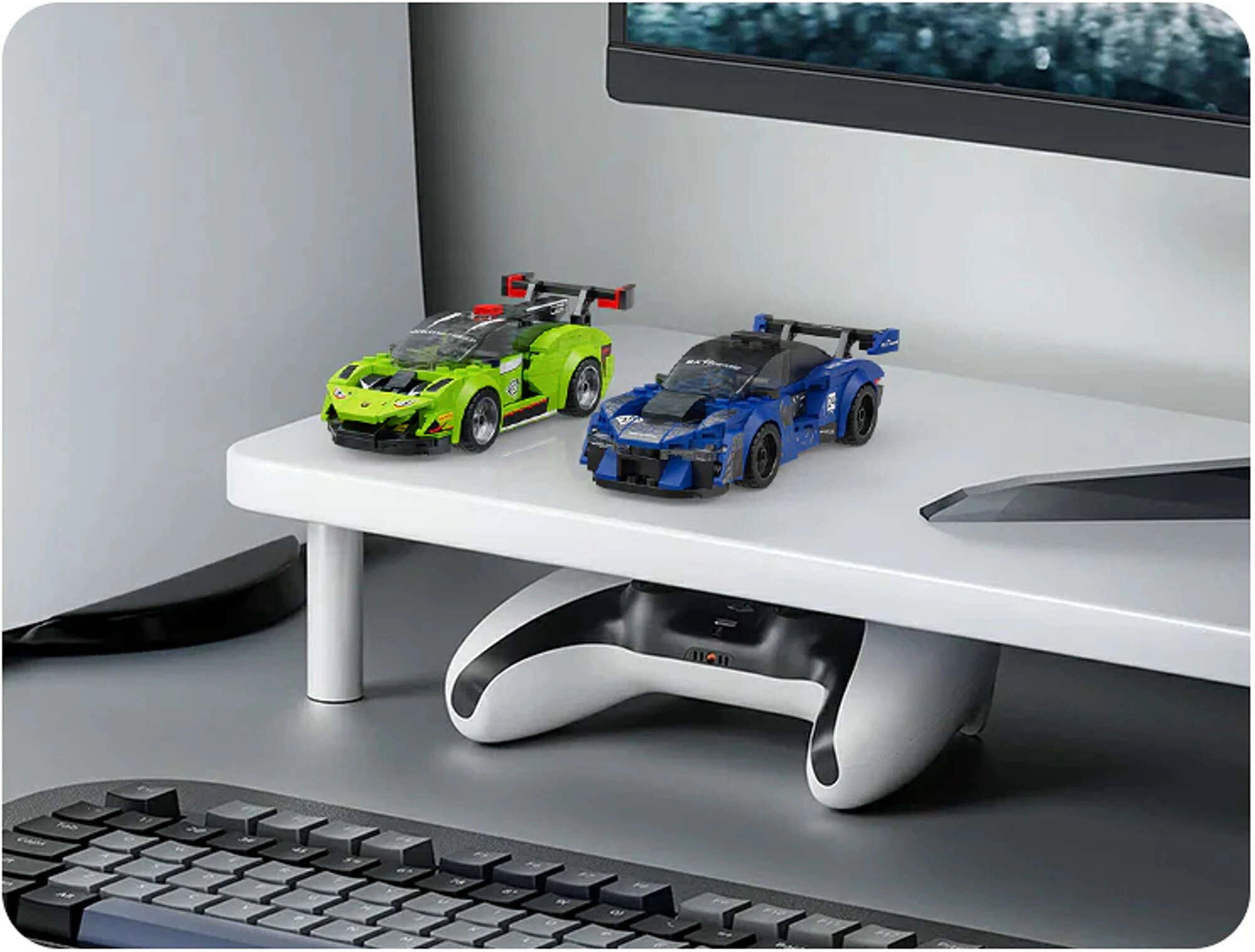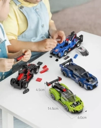 Компактните размери и ярките цветове правят модела атрактивна декорация. Едновременно с това е идеален за споделено строене и семейни състезания.