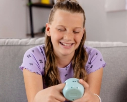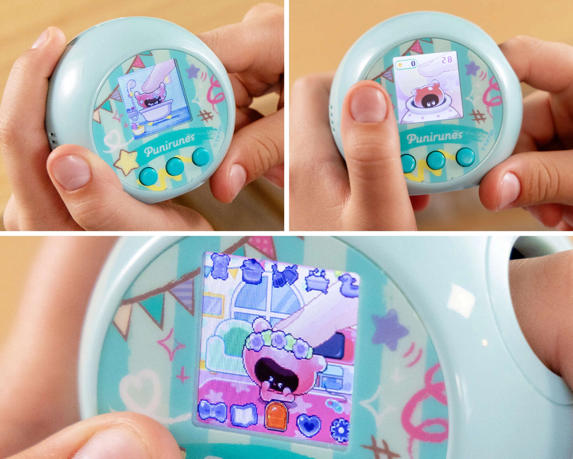 Punirunes съчетава грижата за дигитален любимец с уникално тактилно изживяване. Поставете пръста си в капсулата, намерете мекото сензорно бутонче и вижте как движенията ви се отразяват на цветния LED дисплей – сякаш наистина докосвате своя любимец. Благодарение на компактния дизайн ще вземете играчката навсякъде.
