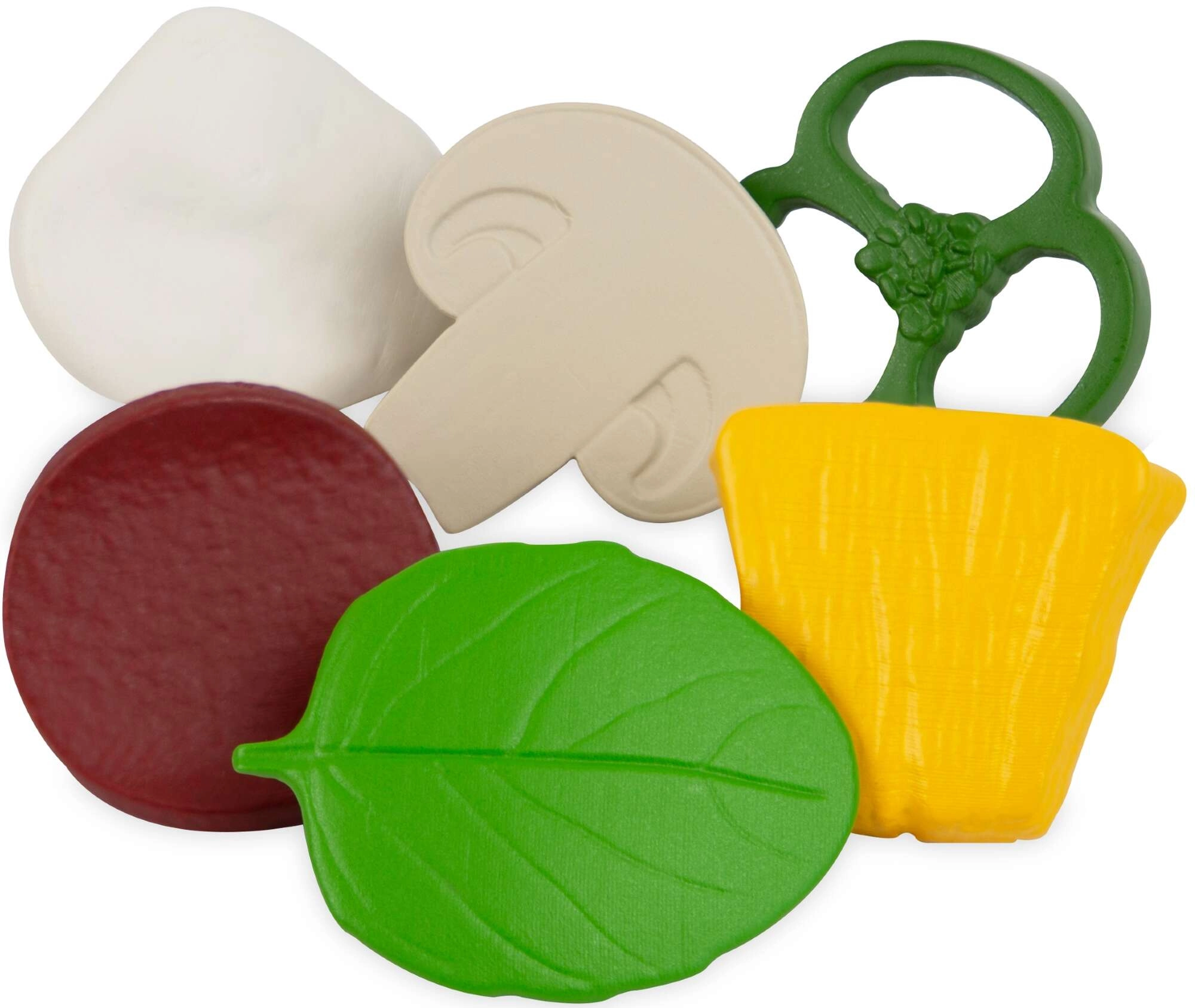Блатът е разделен на 4 части за лесно порциониране и игра на сервиране. Масивните, цветни топинги са удобни за хващане и подпомагат фината моторика.