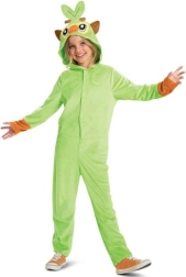 Превърнете малкия фен в очарователния тревист Покемон Grookey! Цялостният кигуруми гащеризон от мек полиестер предлага удобство през целия ден, а качулката с големи очи, листо и ушички придава изразителна и автентична визия. Благодарение на предното закопчаване се облича и съблича лесно.