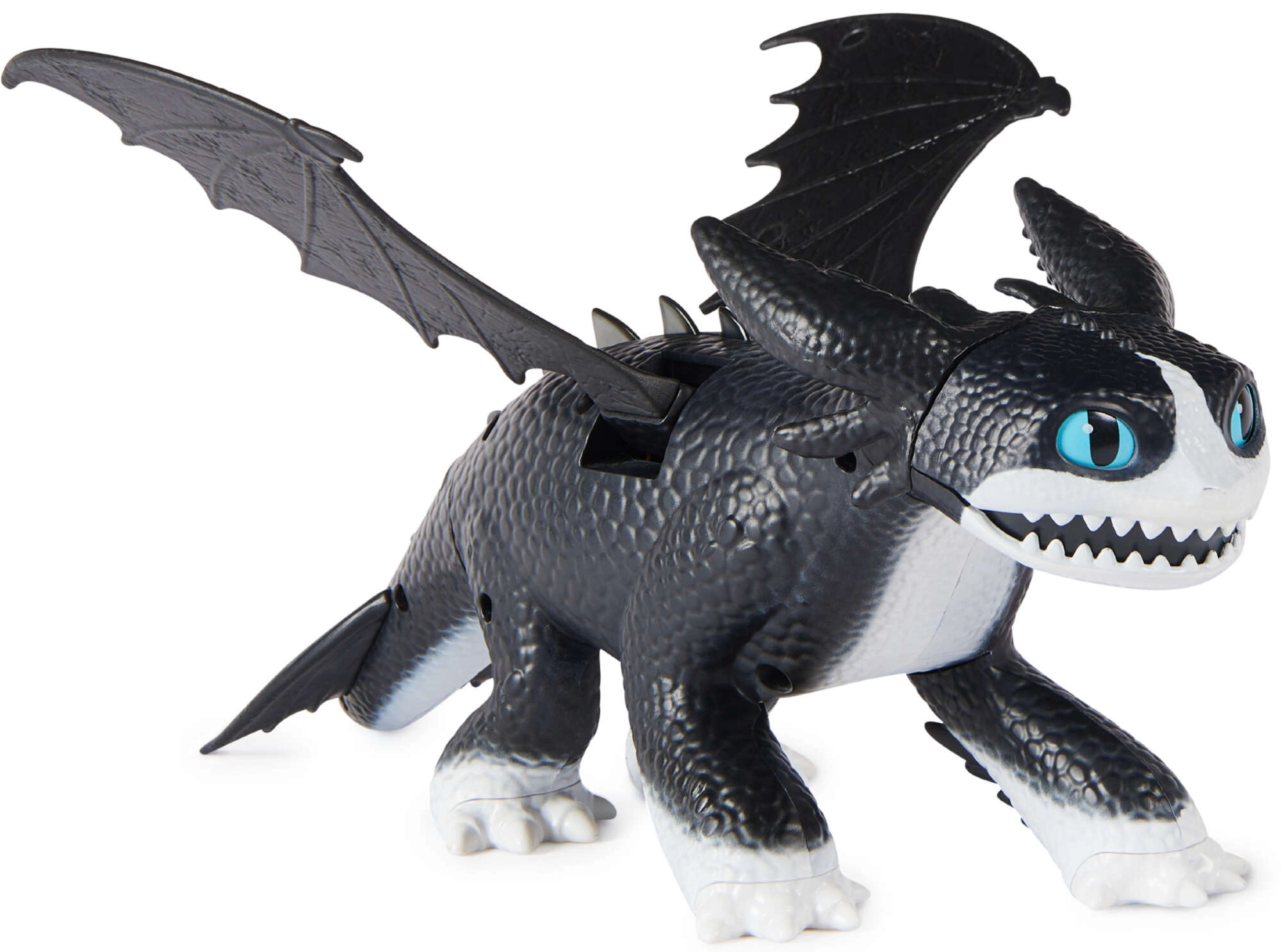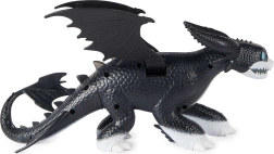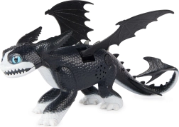 Тази прецизно изработена фигурка на Нощния Бяс, вдъхновена от света на DreamWorks, носи много забавление за деца и колекционери. С натискане на бутона зад крилете се активират драконови звуци и лилави светлинни ефекти в шиповете и устата, които напомнят емблематичния изстрел на звуковия лъч. Здравата пластмасова изработка с текстурирани люспи и изразителни сини очи е чудесна както за въображаема игра, така и за изложение на рафта.