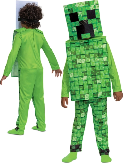 Влезте в света на MINECRAFT с официално лицензирания костюм Creeper, който ще зарадва всички малки почитатели на тази култова игра. Благодарение на характерния зелен пикселиран дизайн и ъгловатата глава детето мигновено се превръща в един от най-известните игрови персонажи.