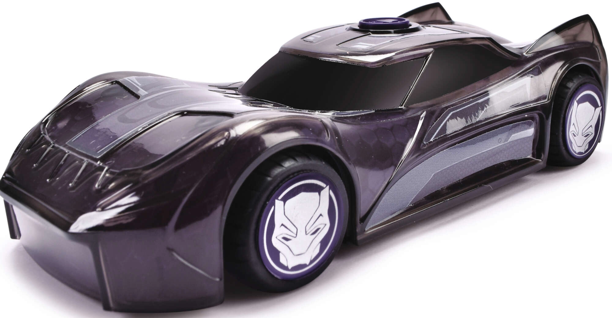 Потеглете на екшън пътешествие с количката MARVEL Black Panther. Каросерията с маска и футуристични линии перфектно отразява стила на любимия герой. С натискане на лилавия бутон се активират сияйни светлини по цялата каросерия и автентични звуци на колата и героя за още по-голямо удоволствие от играта.