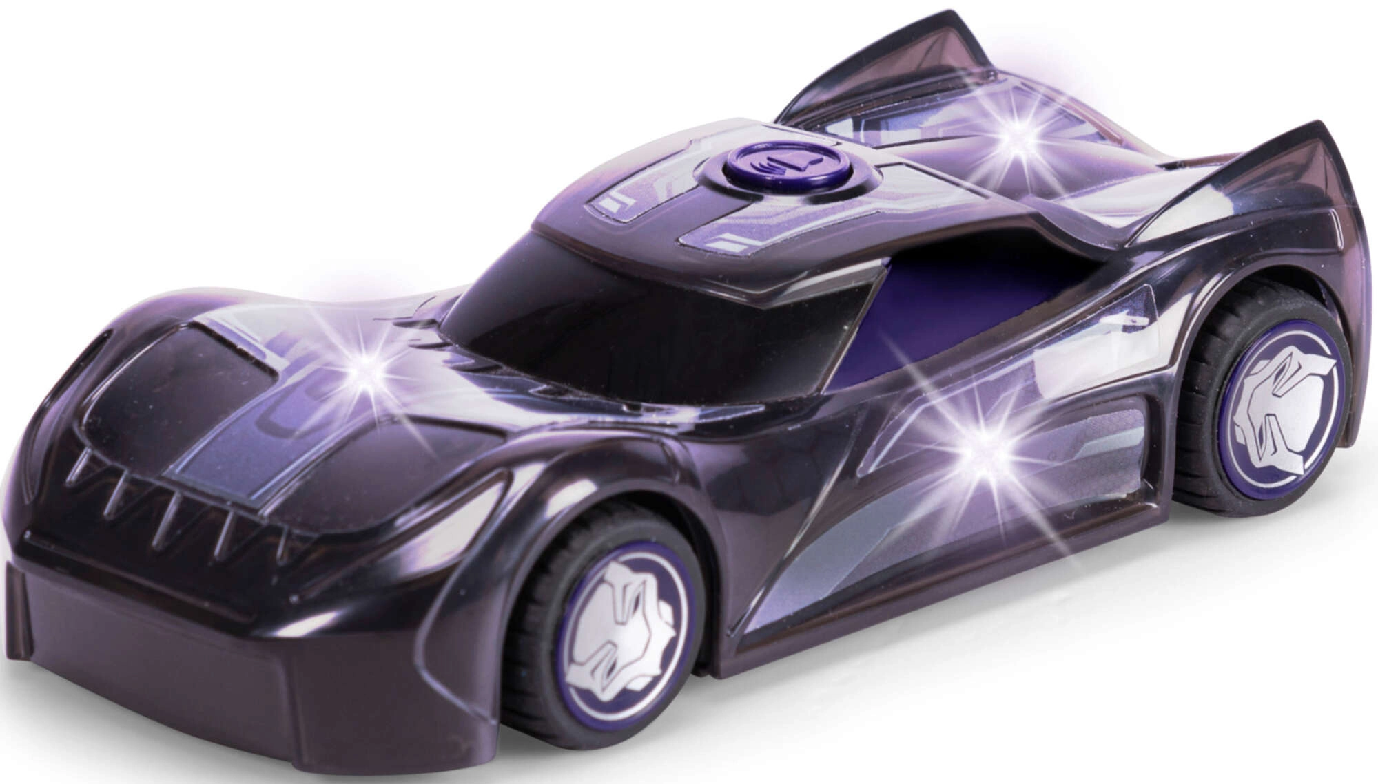 Ярки LED ефекти озаряват количката и подчертават супергеройската визия на BLACK PANTHER – идеално за вечерна игра и екшън сцени.