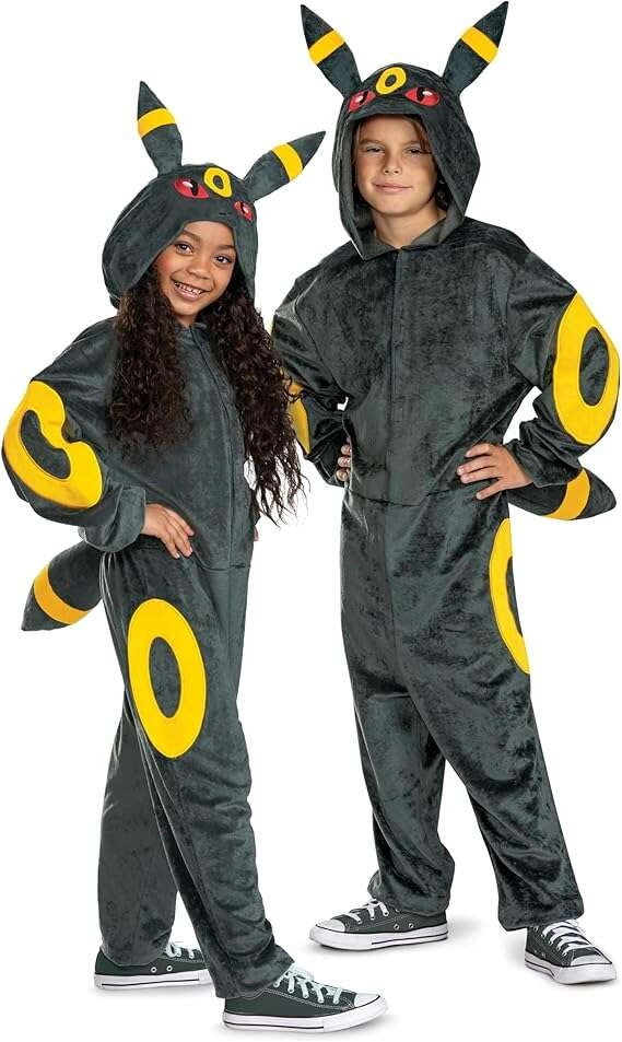 - Дизайн Umbreon: черно‑жълти пръстени, качулка с очи и ушички, опашка.