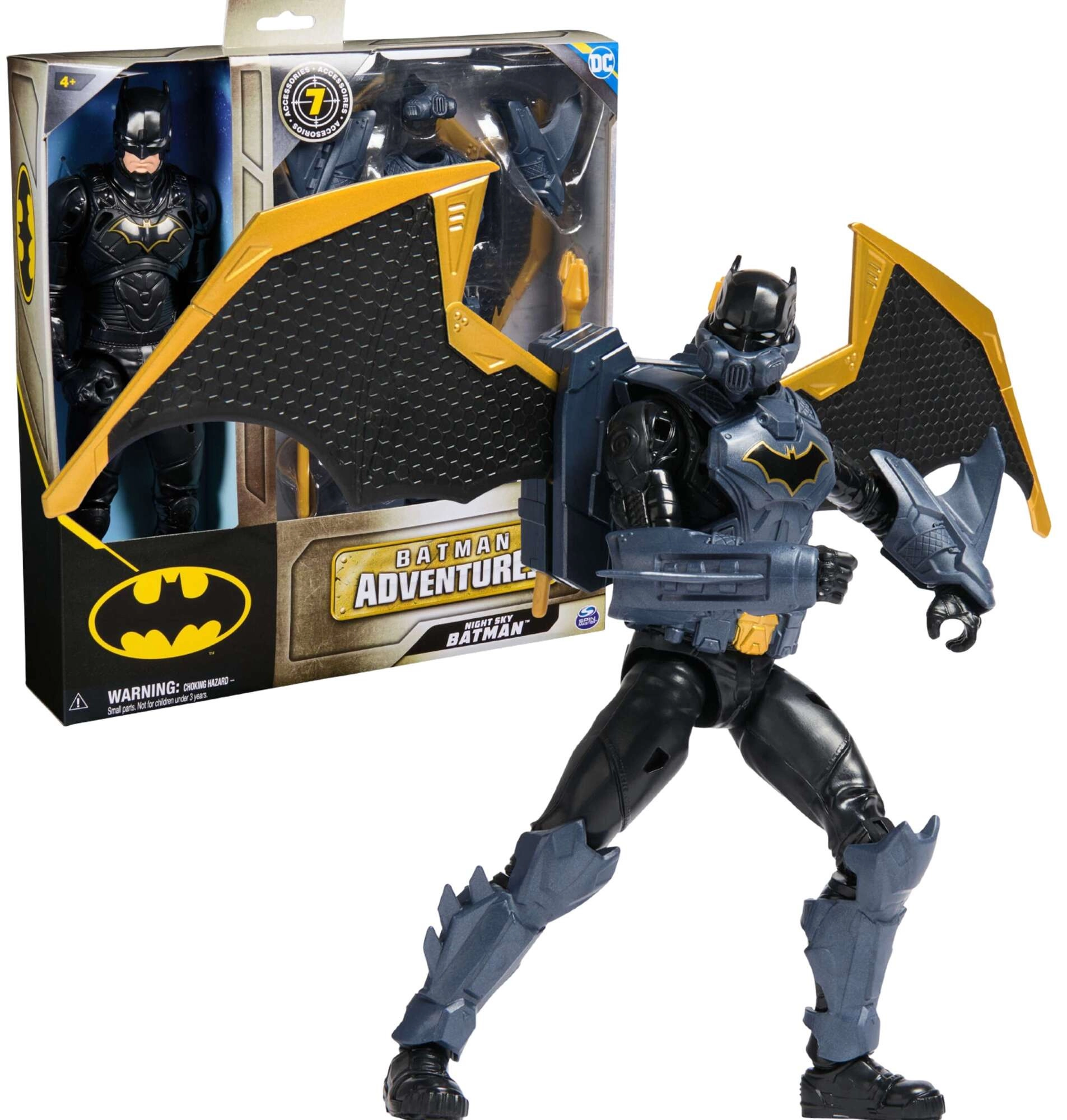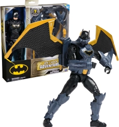 Голяма екшън фигура BATMAN 30 см за малки и големи фенове на DC, която предлага богат набор от аксесоари, подвижни стави и ефектни свалящи се крила за приключенски сценари и. Благодарение на 7-те части оборудване, броня и изстрелващи се снаряди, децата могат да персонализират външния вид и способностите на Тъмния рицар и да се насладят на креативна игра, пълна с действие.