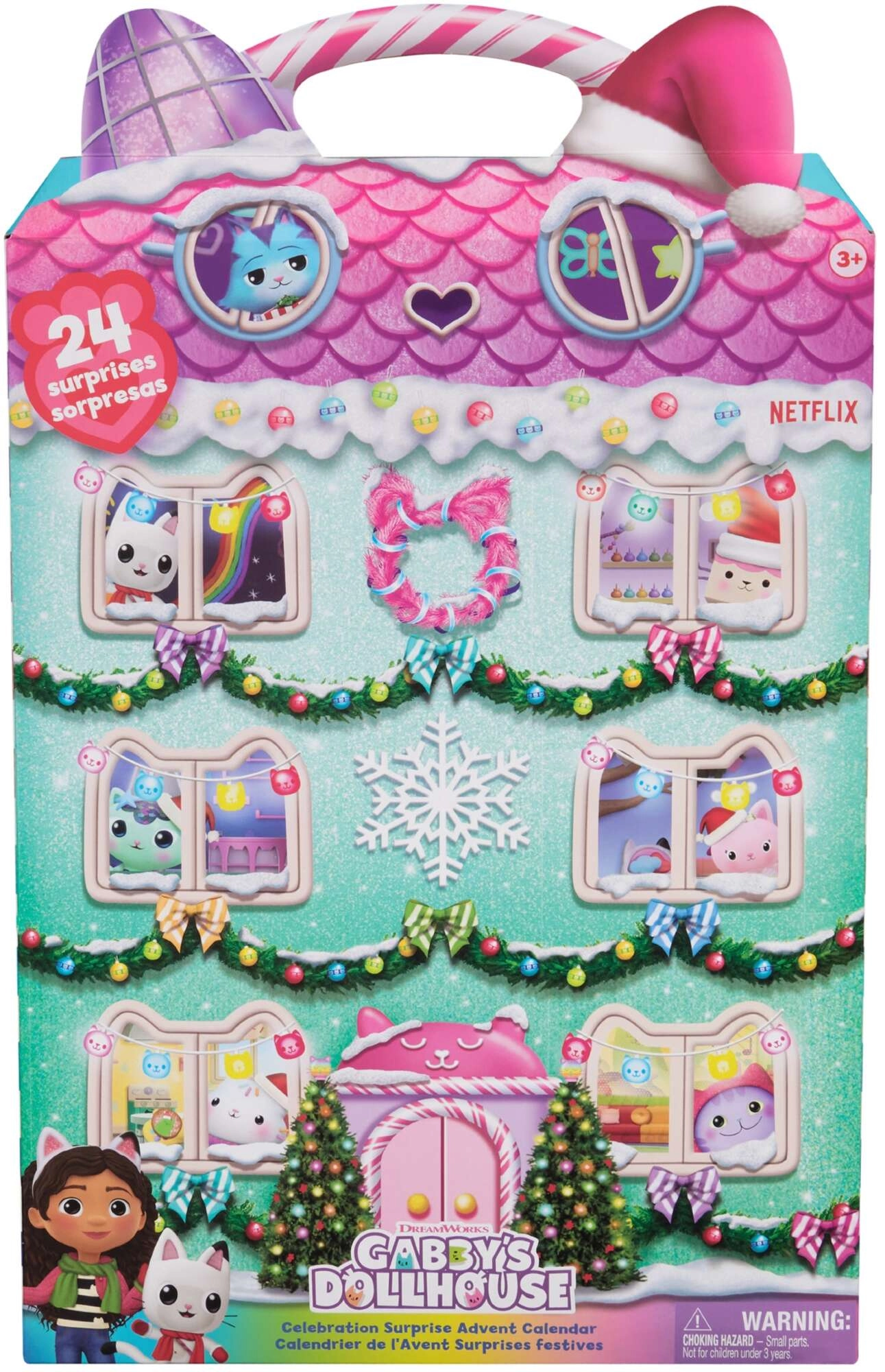 Откривайте всеки ден нова радост с този вълшебен адвент календар, вдъхновен от сериала GABBY'S DOLLHOUSE на Spin Master. В пастелни цветове и с очарователна графика той крие 24 отварящи се прозорчета, пълни с фигурки, аксесоари и хартиени декорации, с които децата ще създадат свой миниатюрен свят и ще се наслаждават на фантазийна игра през целия декември.