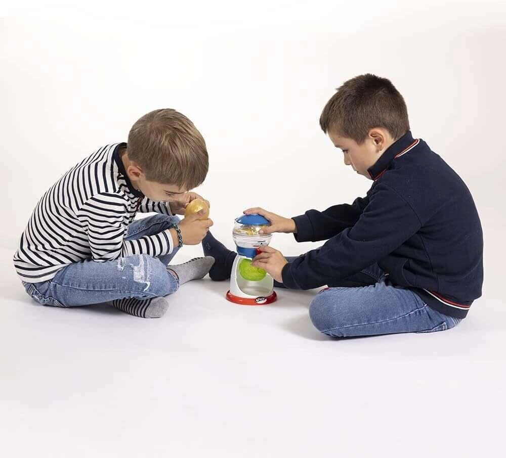 С този интерактивен комплект децата ще си изработят уникални антистрес топчета, пълни с цветове, брокати и декорации. Централният прозрачен контейнер позволява лесно пълнене, докато червеното въртящо колелце помага топчето да се затвори безопасно. В опаковката ще намерите три цветни топчета (червено, зелено, жълто) с релефни мотиви на любимите супергерои.