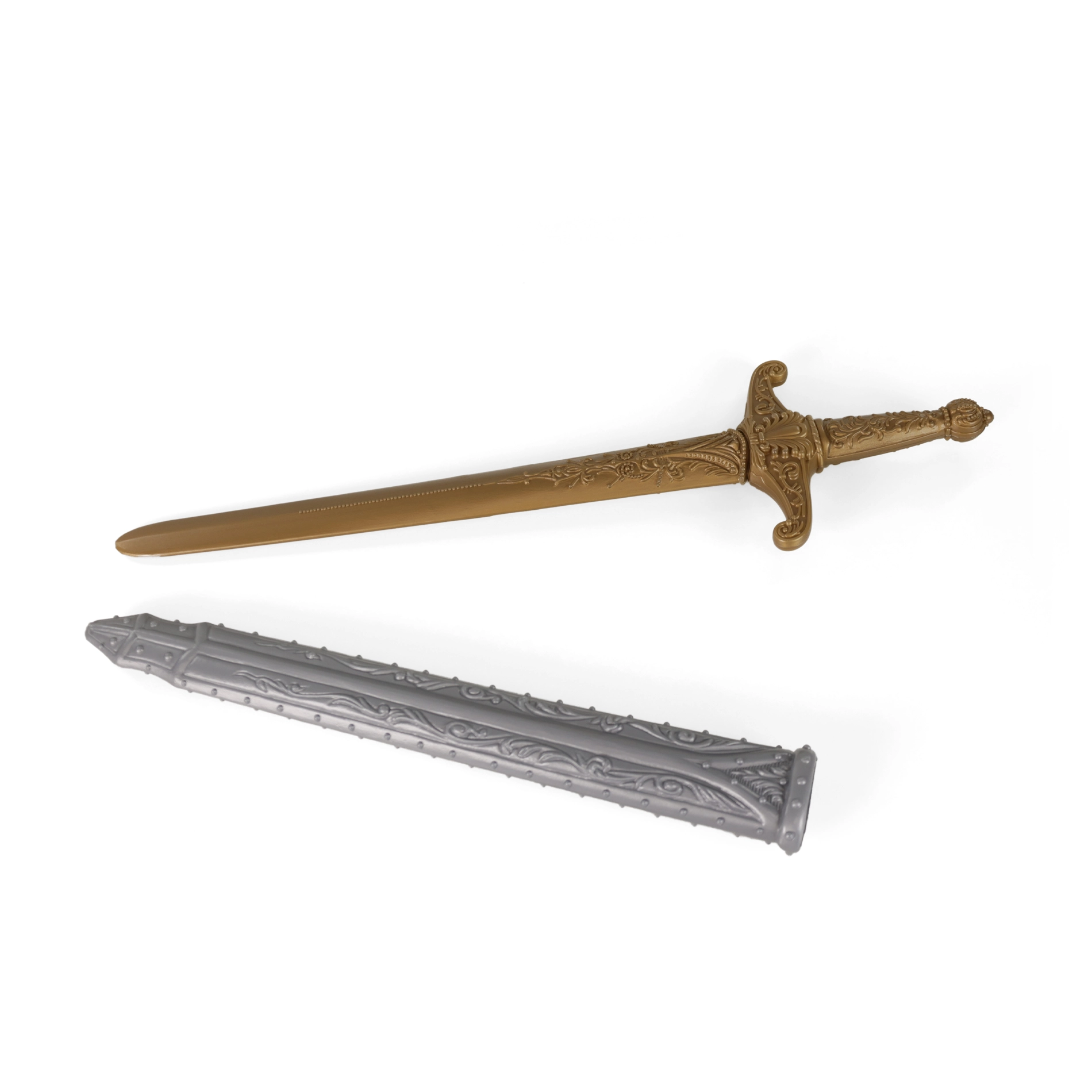 Комплектът включва всичко, от което малките рицари се нуждаят, за да изпълнят своите героични мечти – меч с кания, щит, шлем и елека.