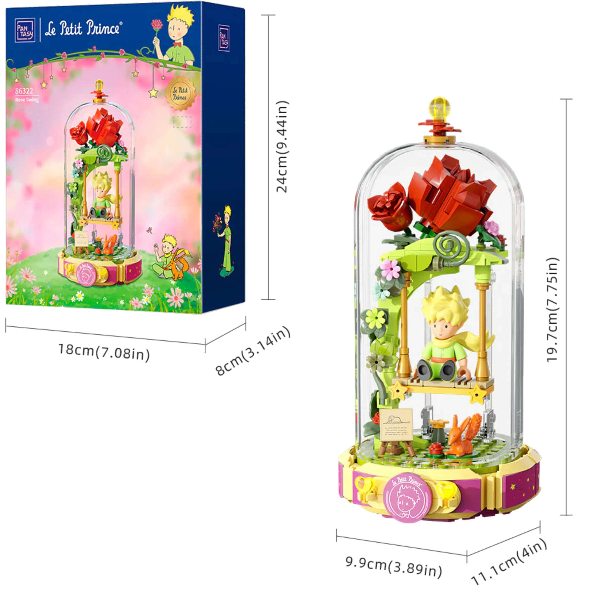 Открийте магията на историята за Малкия принц с елегантния конструктор Pantasy, който създава нежна сцена с рози, люлка и лисица под прозрачен капак. Прецизно пасващи елементи, 234 части, издръжлива ABS пластмаса и печатни детайли без стикери гарантират красив вид дори след години. Страхотна декорация и подарък за деца от 6+ и всички почитатели на колекционерските конструктори.