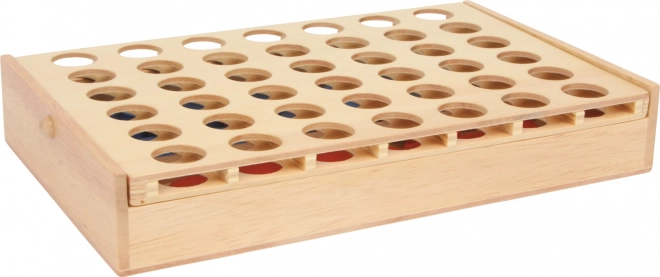 Тази дървена игра е идеална за пътуване благодарение на компактния си дизайн. Играчите по ред пускат червени и сини дискове във вертикални колони, като целта е да се създаде редица от четири диска от един и същи цвят. Благодарение на качествената дървена изработка играта не само има естетичен вид, но е и издръжлива и дълготрайна.