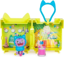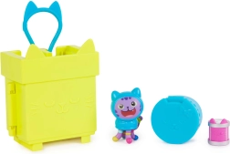 Преносим минибокс от приказката Gabby’s Dollhouse с фигурка DJ Catnip предлага на децата много забавление навсякъде. Жълтият калъф с уши служи като клип за раница и като мини стаичка за игра и може да се свързва с други сетове, за да построите малка къща на ГАБИ. В комплекта има общо 5 части, идеално за деца от 3 години.