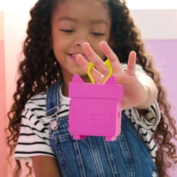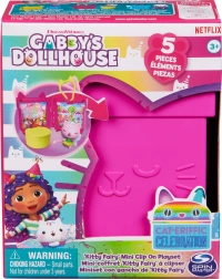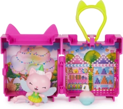 Този преносим минибокс във форма на котешко калъфче ще зарадва всички фенове на сериала Gabby’s Dollhouse. Вътре ще откриете цветен фон на карнавална/приказна сцена, сладка фигурка Кити Феърри и тематични аксесоари. Благодарение на клипа и дръжката децата могат да вземат своята мини игрална стая навсякъде – да я закачат на раницата или да я носят в ръка.