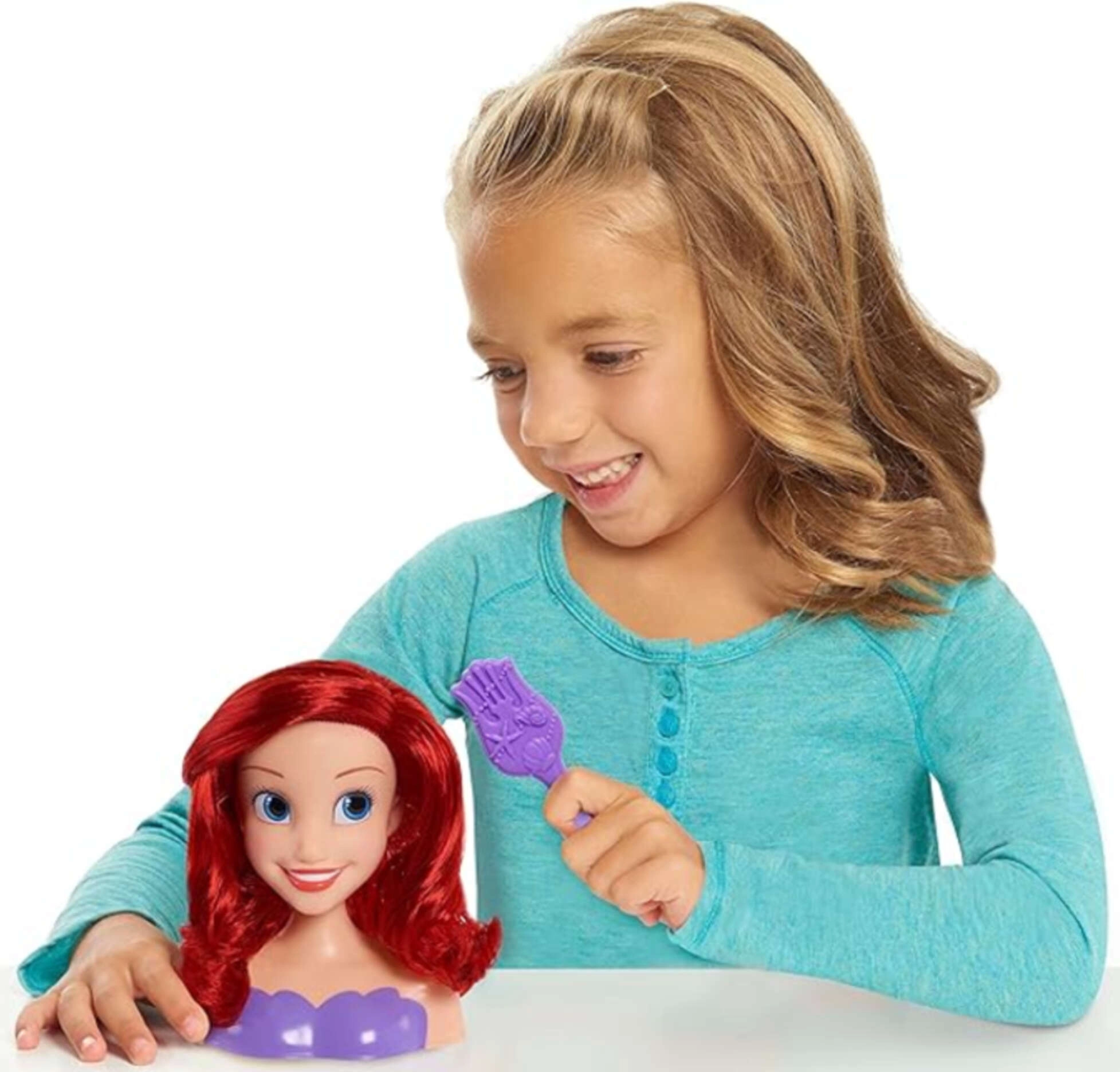 Стилизираща глава на Ариел от приказката DISNEY Малката русалка, която ще зарадва всички малки фризьорки. Има дълга, лъскава рижа коса, която лесно се разресва и оформя. В комплекта е включена лилава четка за създаване на безброй прически. Играчката развива креативност, фината моторика и естетическото усещане.