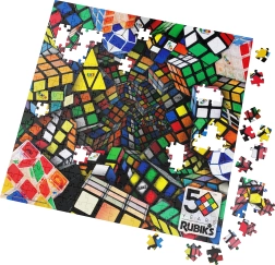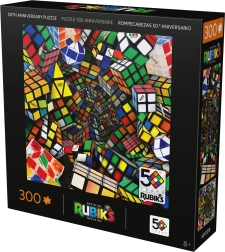 Влезте в света на емблематичната логическа легенда. Този пъзел за 50-годишнината на Кубчето на Рубик предлага енергична, дори психеделична композиция от различни форми и варианти на кубчето през годините. Ярките цветове и динамичните шарки ще зарадват всеки фен на главоблъсканиците и любител на дизайна.