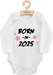 Търсите удобно и безопасно боди за всеки ден? Това розово боди с надпис „Born in 2025“ е отличен избор за бебета и малки деца. Фината памучна трикотажна материя е дишаща, мека на допир и идеална за чувствителната детска кожа. Благодарение на закопчаването с копчета тик-так на рамото и между крачетата се облича лесно и ускорява преобуването.