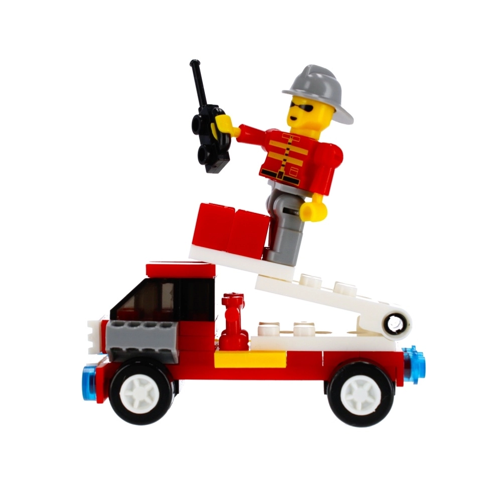 Здрав малък автомобил с подвижни елементи и оборудване за действие. Отличен за сценки на пожарни операции в града.