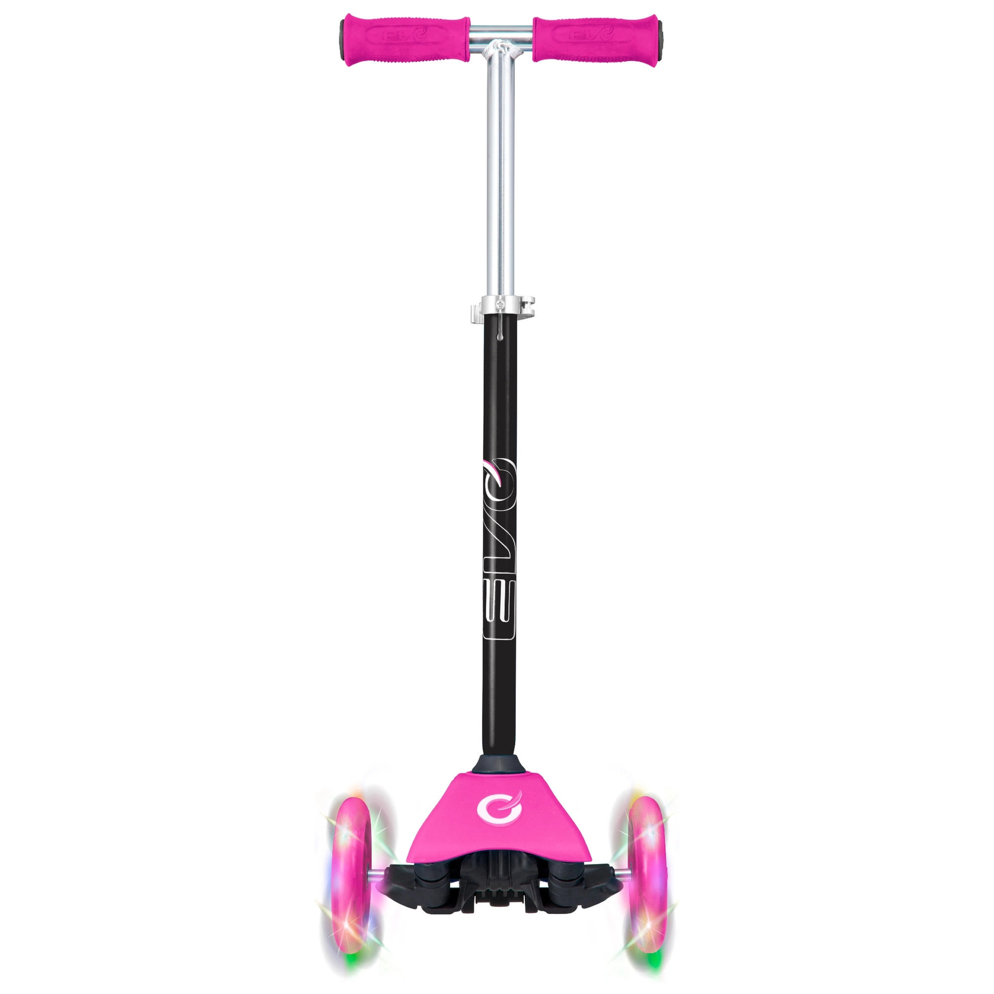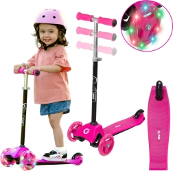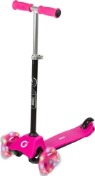 Лека и стабилна детска тротинетка EVO Mini Cruiser с три колела за лесно усвояване на равновесие. Предлага светещи LED колелца, накланящо се (балансно) управление, височинно регулируем кормил и задна крачна спирачка. Розовият дизайн привлича малките ездачи, а тихото каране и широката платформа осигуряват комфорт и безопасност.