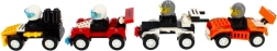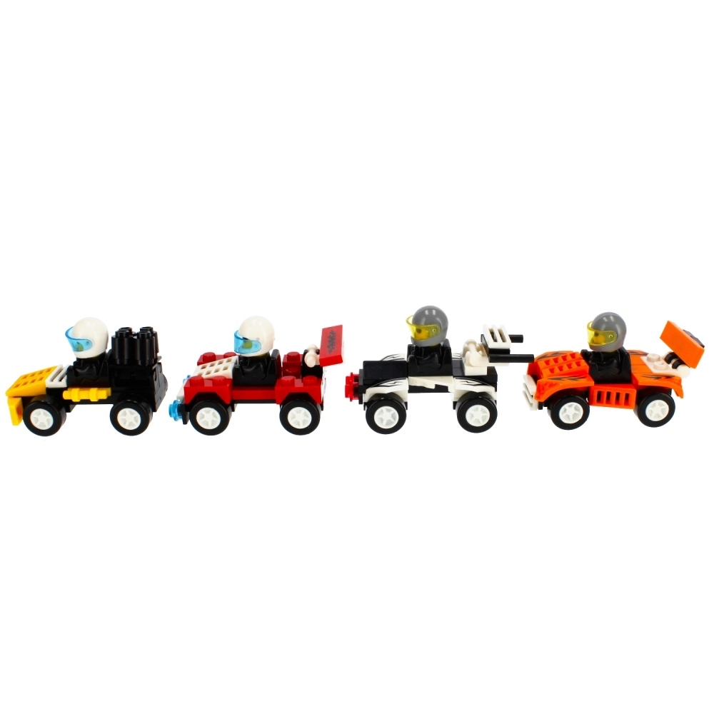 На разположение са 4 атрактивни дизайна (различни цветове и детайли), които изглеждат страхотно както на рафта, така и на домашната писта. Количките са съвместими с обичайни конструктори от подобен тип, така че лесно можете да разширите оборудването или да създадете собствен отбор.