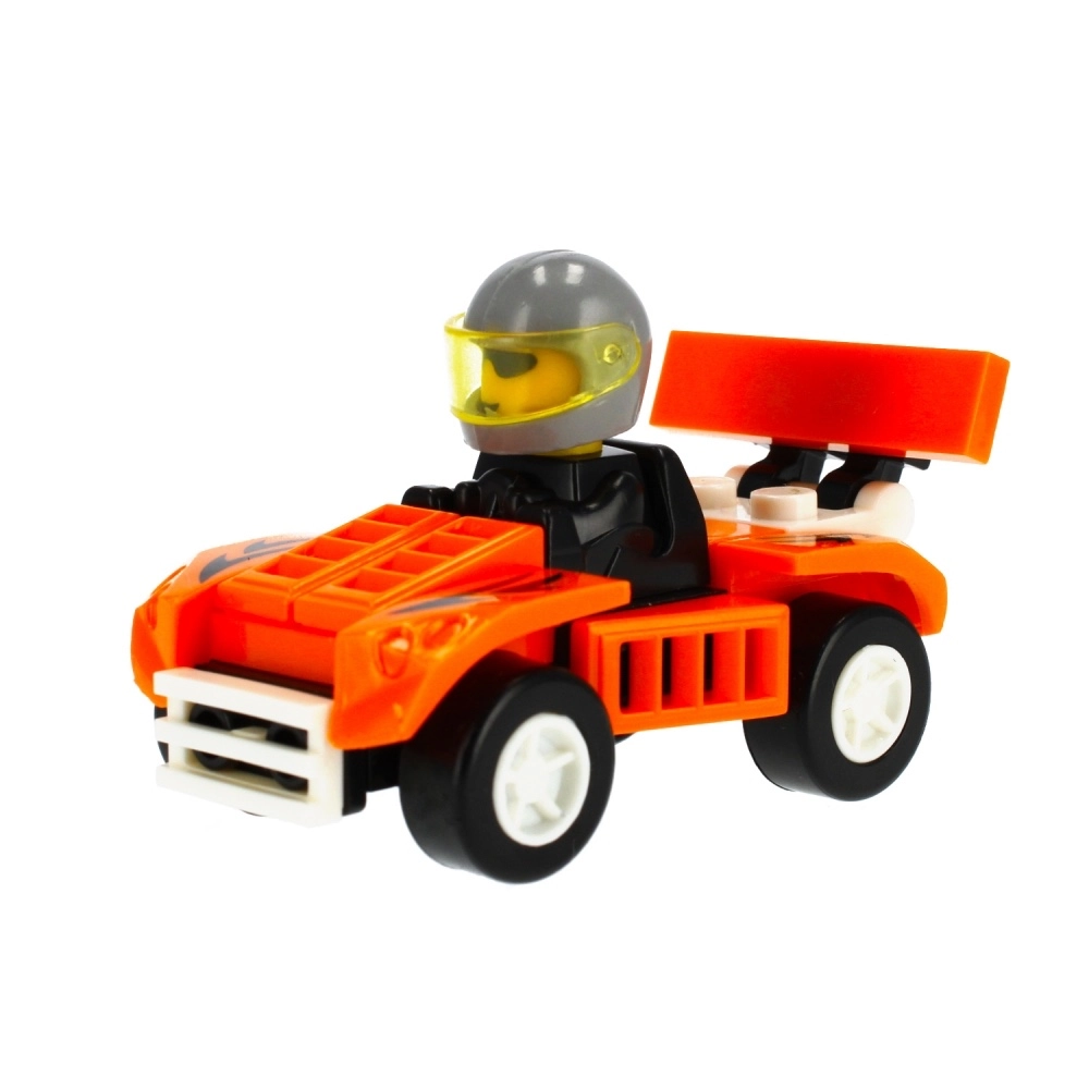 Този малък, но добре обмислен конструктор на състезателна кола носи бързо забавление за малки и по-големи строители. Във всяка опаковка има всичко необходимо за сглобяване на функционална количка с шофьор – от здрави елементи до инструкции. Компактните размери гарантират много екшън дори в малко пространство.