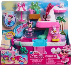 Включени са фигурки MINNIE, DAISY и сладкото кученце Snowpuff, които можете да настанявате в кресълца, на люлка или да пускате по пързалката. Светлини и звуци и блестяща „дискотопка“ придават на всяка сценка вълшебна атмосфера, докато студената вода в басейна активира магическата смяна на цвета.