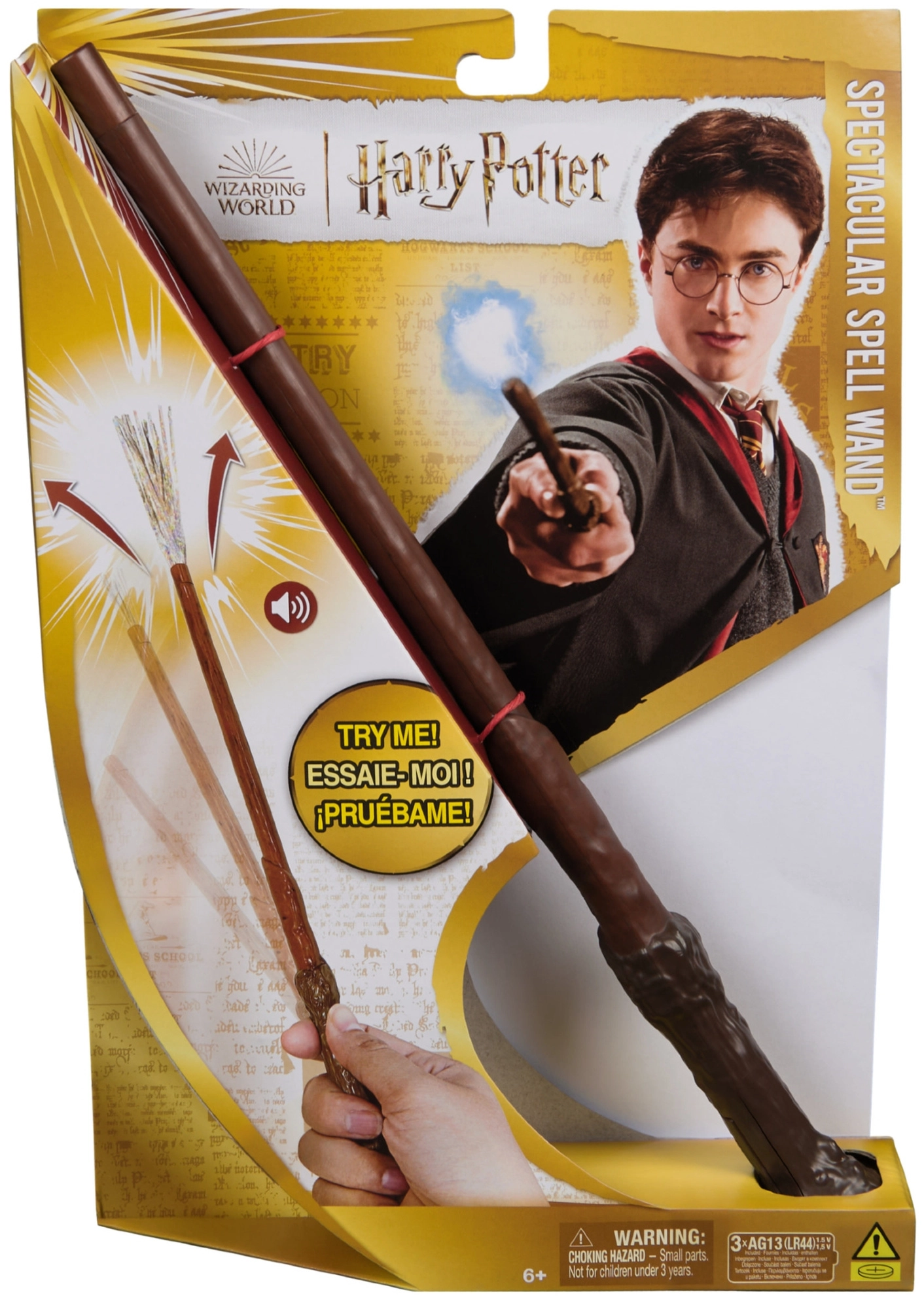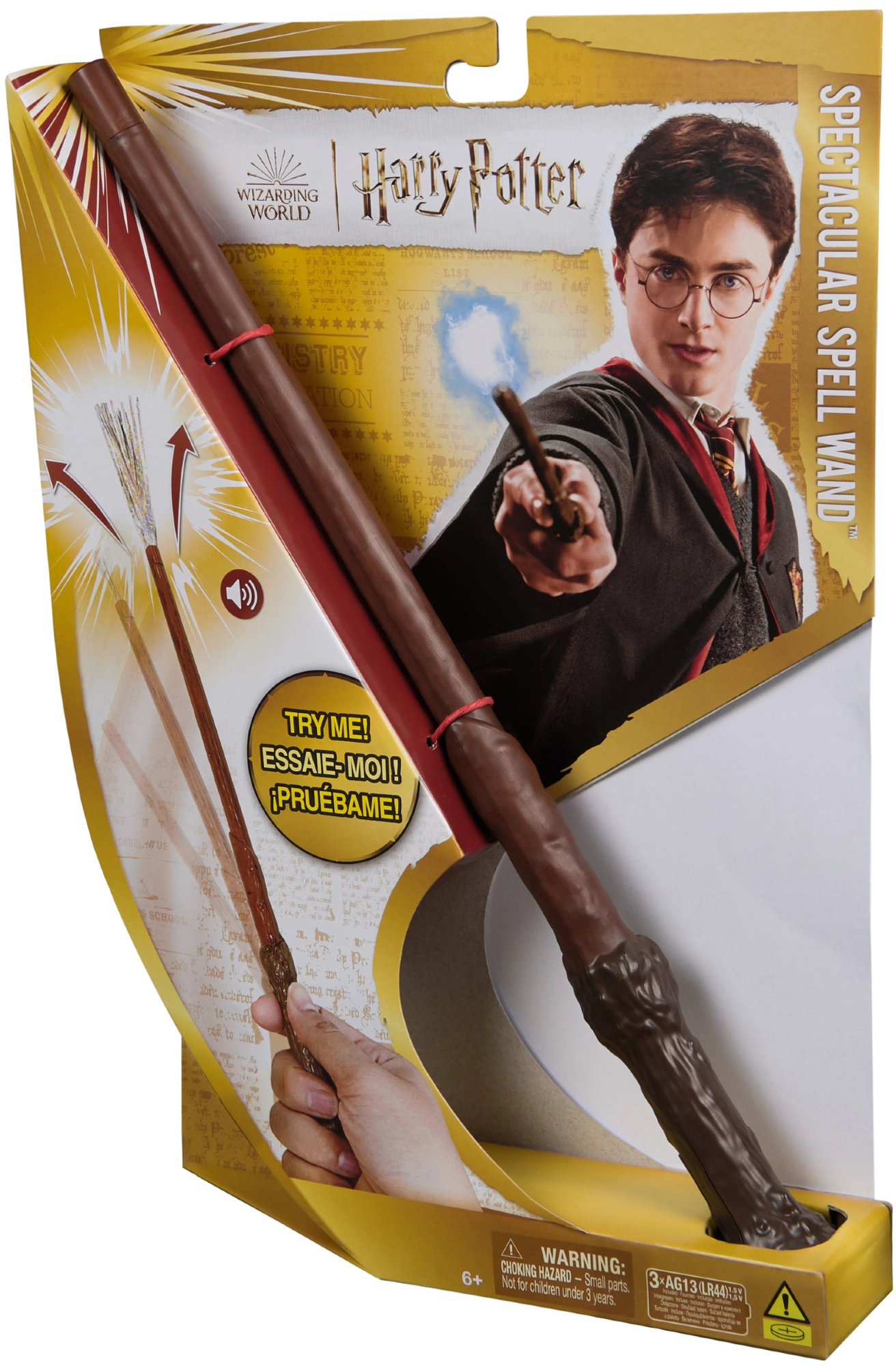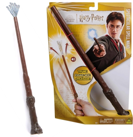 Оставете се да ви завладее магическата атмосфера на филмовата поредица HARRY POTTER и изпробвайте реалистичната пръчка Spectacular Spell. Пръчката се активира от движение на ръката, което придава на всяко заклинание правилния ефект. След изпълнение на магия, на върха на пръчката се появяват сребърни ленти, които имитират магическа светлина, а вие ще чуете кратък звук.