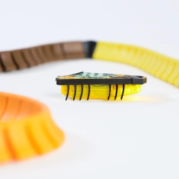 Стартовият комплект HEXBUG NANO FLASH носи динамично действие в джобен размер. Полупрозрачното жълто телце на буболечката светва, множеството еластични крачета я задвижват във всички посоки и вие наблюдавате как инстинктивно си пробива път по пистата. Гъвкавите стенни направляващи лесно щракват в конекторите и за миг създавате нови маршрути и форми – от дъги до зигзагообразни коридори.