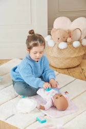 Децата могат да тренират повиване, сресване и „обгрижване“ на куклата с комплект аксесоари, които изглеждат като истински – идеално за развитие на емпатия и ролеви игри.