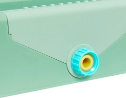 Повдигнатият ръб и изпускателната тапа улесняват източването на водата и почистването. След игра комплектът може бързо да се сглоби в компактен куфар и да се пренася лесно.