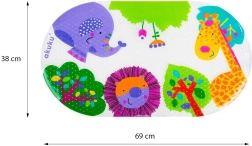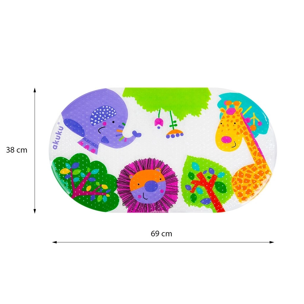 Безопасно и забавно къпане за деца и родители. Противоплъзгащата се постелка Akuku с вендузи осигурява стабилност във ваната и душа, изработена е от висококачествен PVC без фталати и благодарение на цветния принт прави ежедневната хигиена по-приятна. Повишена безопасност, надеждно прилепване и лесна поддръжка в едно.