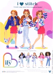 Открийте модната кукла Disney ILY 4Ever, която ще зарадва всички любителки на стила и историите на Disney. Куклата с мотив STITCH има дълга червеникава коса, е с приблизителна височина 30 см и благодарение на 13 точки на артикулация лесно заема динамични и реалистични пози. Двата пълни комплекта облекло и множеството аксесоари позволяват безкрайни комбинации и развитие на въображението.