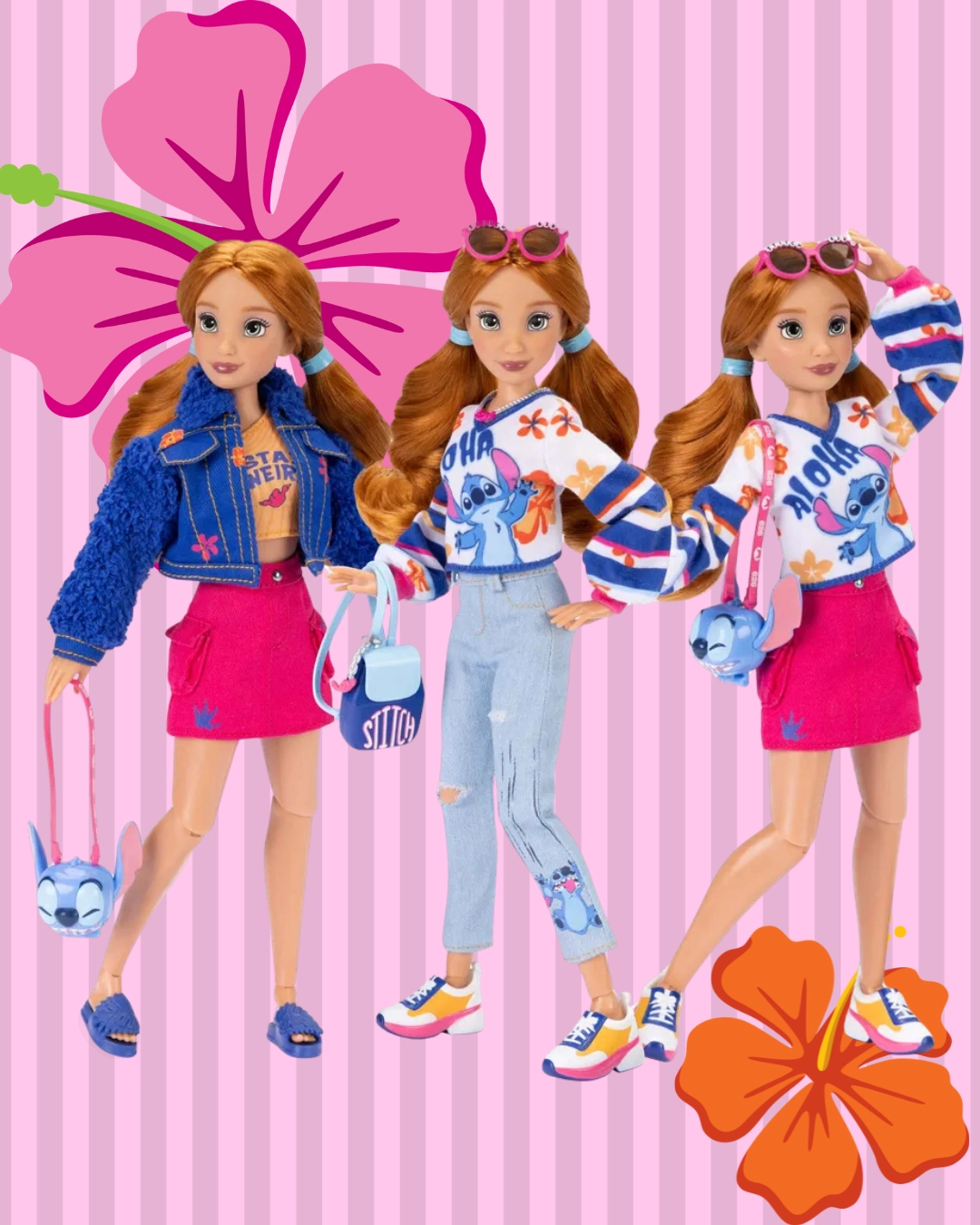 - Богат комплект аксесоари: кецове и чехли, розови ретро слънчеви очила, раница, колие, чанта във формата на главата на Stitch и блестящ син пръстен с мотив MICKEY.