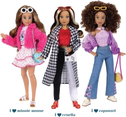 Куклата има къдрава кестенява коса, идеална за ресане и стилизиране. В комплекта ще намерите 2 пълни визии, включително топове, суитшърт/жилетка, дънки, пола, два чифта обувки, чанти и бижута. Акцентът върху детайлите с мотиви от приказката „Заплетена история“ и емблематични елементи на MICKEY придава на сета оригинален облик.