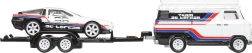 Насладете се на първокласната изработка и състезателната атмосфера с транспортния комплект Team DeLorean. Белият влекач с ремарке превозва спортния автомобил DMC DeLorean #78 в бяло-черна комбинация с червени и сини ивици. Комплектът е готов както за незабавно излагане, така и за игра – просто го извадете от кутията и излезте на трасето.
