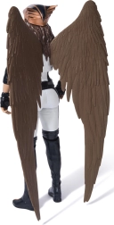 Големи, детайлно оформени крила с текстура на пера подчертават визията на героинята и изпъкват отлично при излагане.