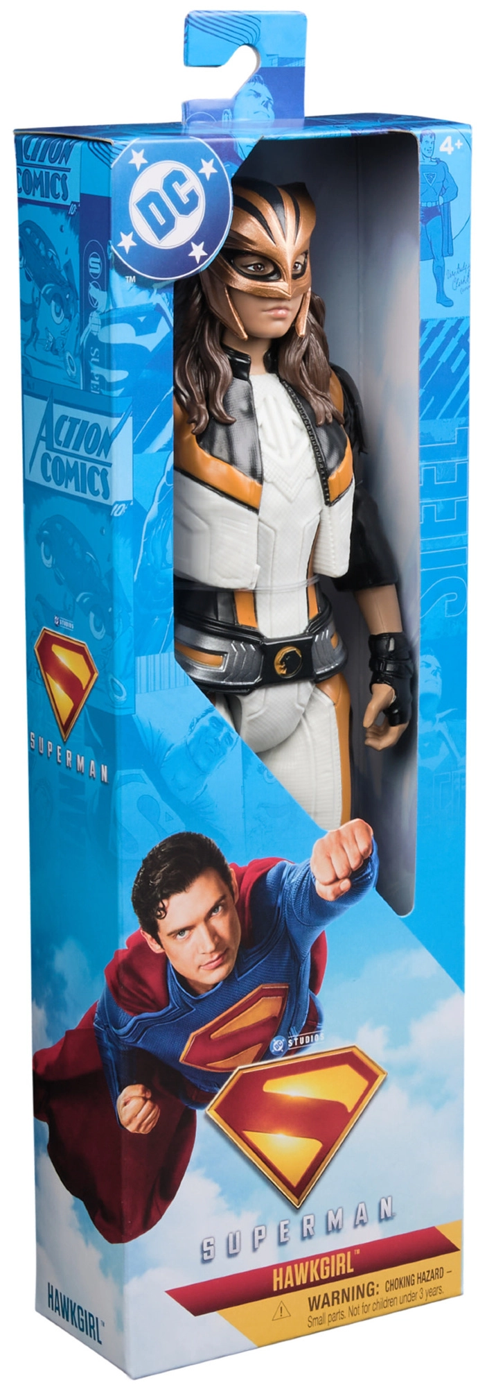 Фигурката HAWKGIRL в бяло-черен костюм със златни акценти вярно пресъздава комиксовата и анимираната визия на воинката от Танагар. Благодарение на артикулираните ръце, крака и глава лесно настройвате екшън пози за бой и полет с самостоятелни кафяви крила.