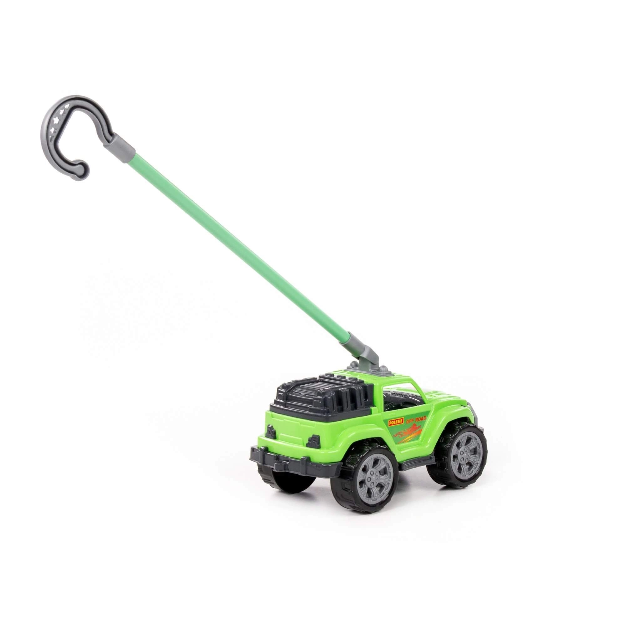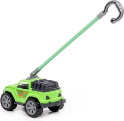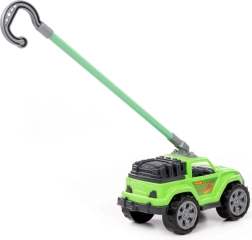 Зелената детска бутачка, вдъхновена от офроуд автомобили, предлага здрава конструкция, големи колела за движение по различни настилки и сваляща се дълга дръжка за лесно водене или дърпане. Чудесна за развитие на моториката и креативна игра както у дома, така и навън.