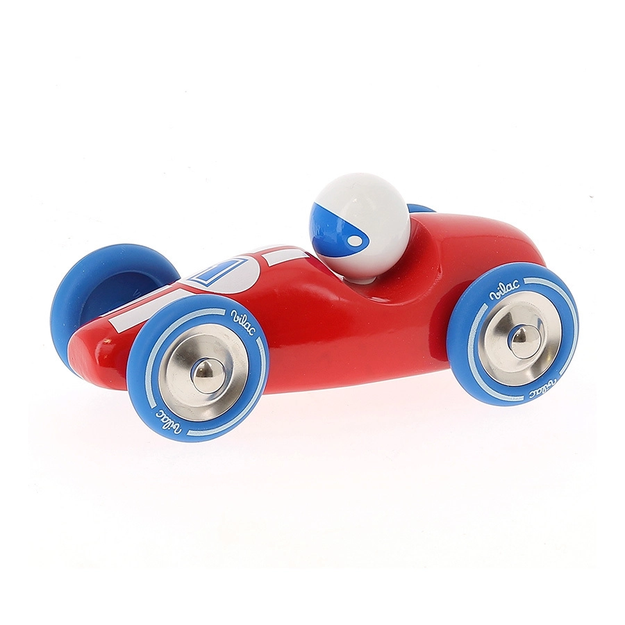 Открийте непреходна играчка, която развива въображението и вкуса. Червената състезателна кола VILAC се отличава с изчистен дизайн, качествена изработка и устойчиви материали. Благодарение на гумираните колела се търкаля лесно и тихо по пода и е безопасна за деца от 2 години.