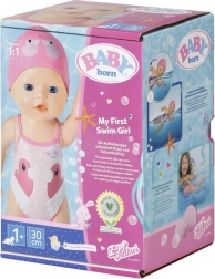 Открийте забавлението във ваната и на басейна с куклата BABY born My First плувец с размер 30 cm. Благодарение на водоустойчивото тяло и умния механичен ход без батерии, куклата при издърпване на ръчичките плува кроул и бътерфлай. Реалистично подвижни глава и крака, сладки релефни бански и шапка с мотив патенце ще зарадват децата още от 12 месеца.