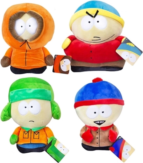 Всяка плюшена фигурка вярно пресъздава иконичните черти на персонажите от South Park – от цветните шапки до типичните облекла и изражения.