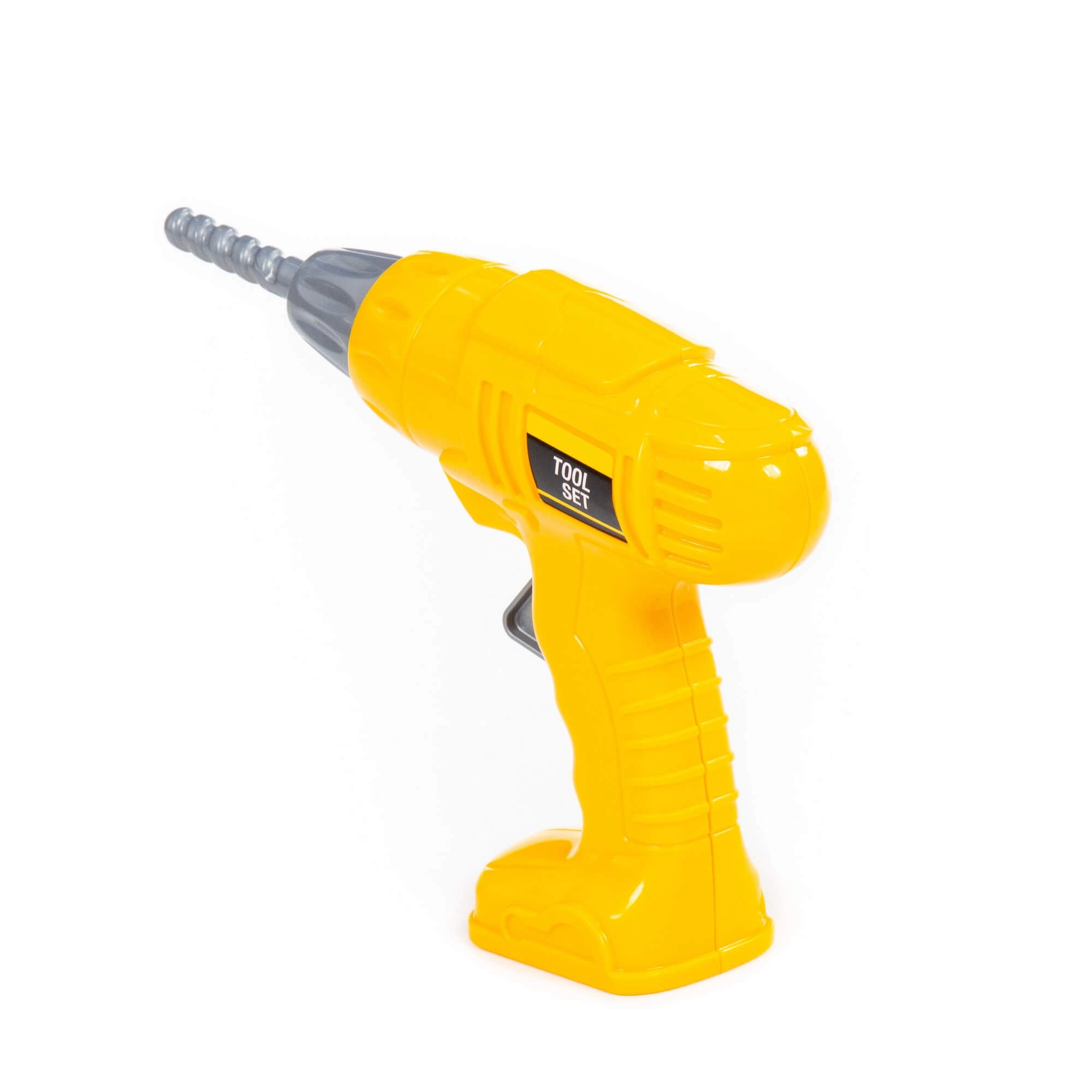 Бормашината насърчава креативната игра, ученето и координацията око-ръка. Ярката цветова комбинация и надписът „TOOL SET“ подтикват въображението и въвличат децата в света на строежа и ремонта.